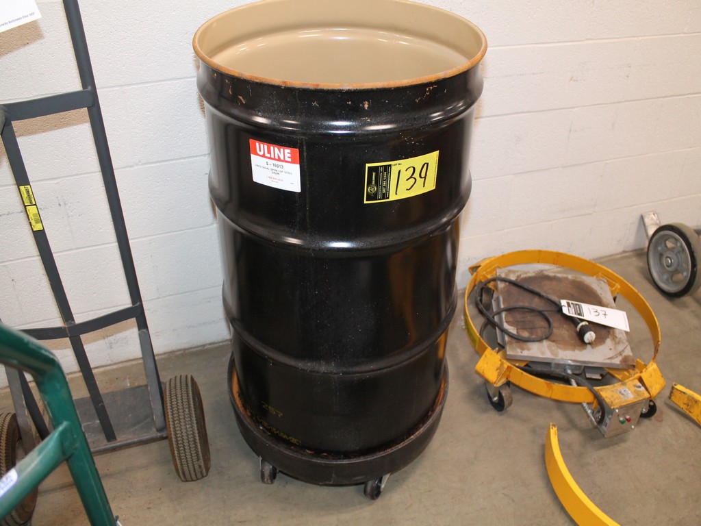 Universal Drum Dollies, 500# Capacity, 4-Wheels; Uline S-16913 Steel 55-Gallon Drum, Open Top.