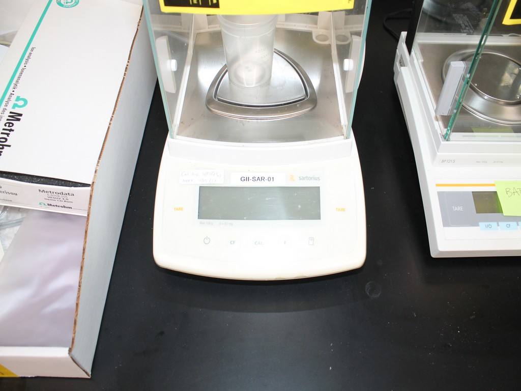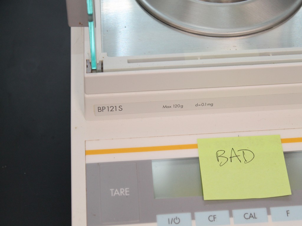 Sartorius CPA124S Analytical Precision Scale, SN 24950670, 120g Capacity; Sartorius BP1218 Analytical Scale, SN 11509250. NOTE: Sticker States that this Scale is "Bad".