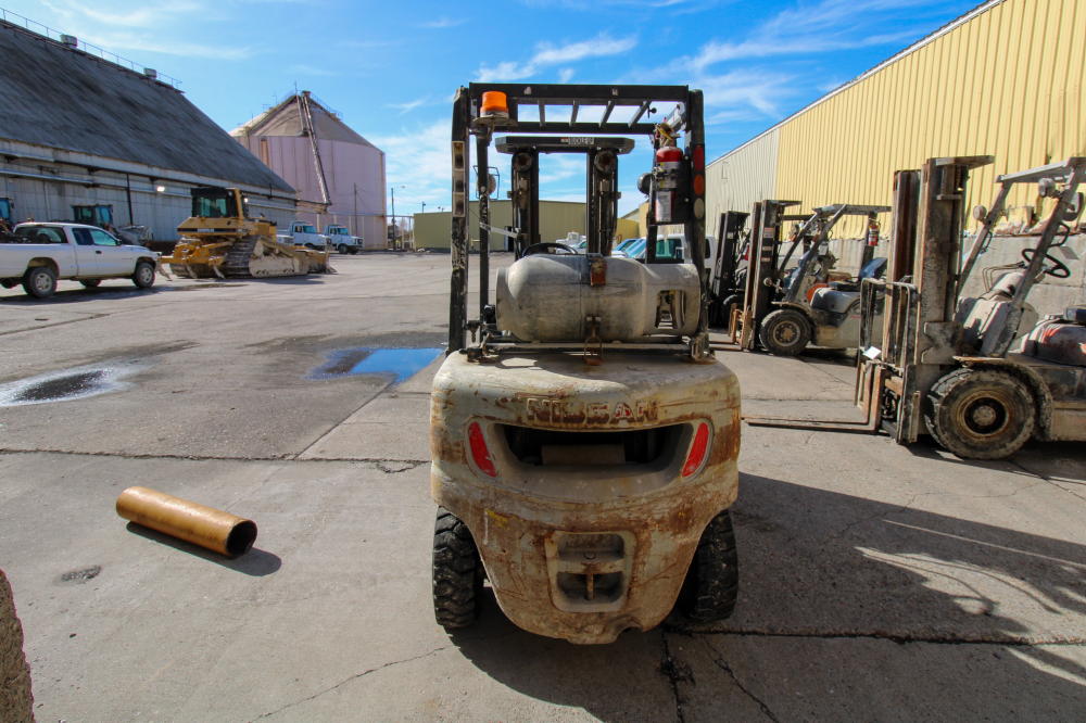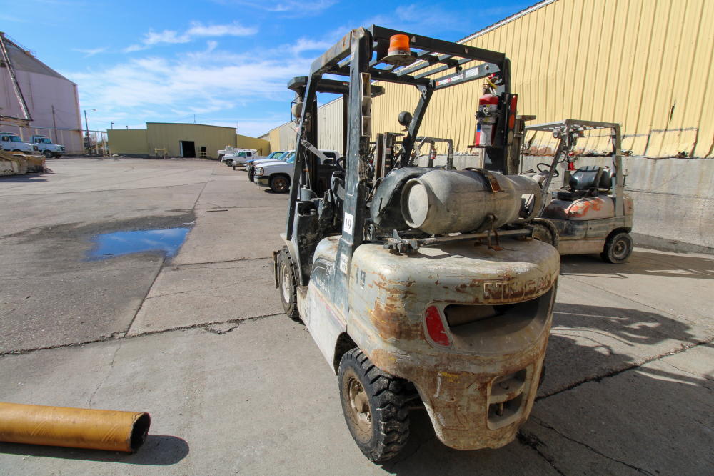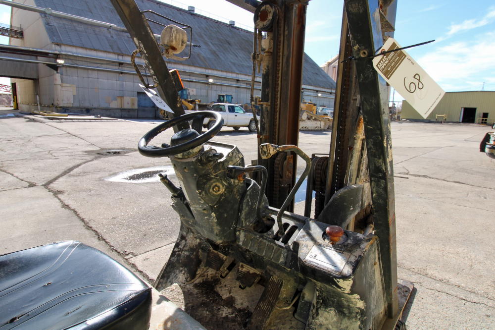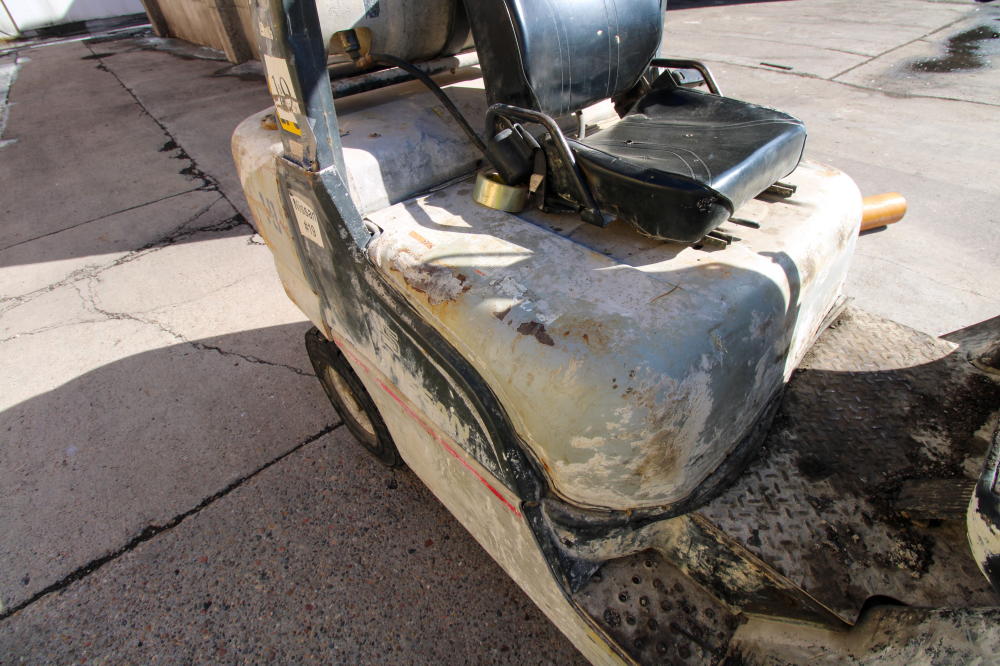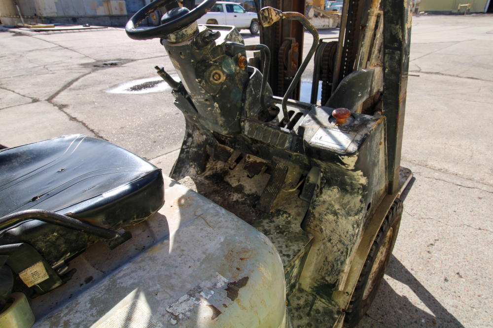 LP Gas, 189" Max Lift Height, 4050# Max Lift Capacity, 6 deg. Tilt-Back, 3-Stage Mast, Side Shifter, Solid Pneumatic Tires, Overhead Guard, 48" Forks, NOTE: 88888.8 Metered Hours with Error Message, Believed to be 2008 But Not Guaranteed.