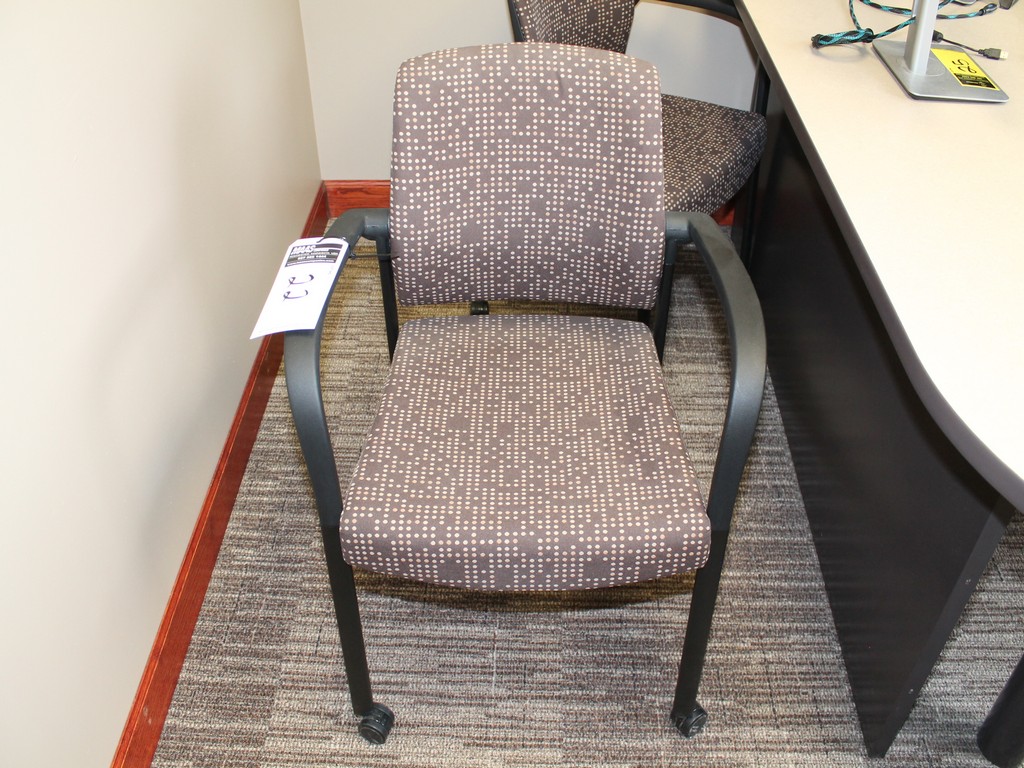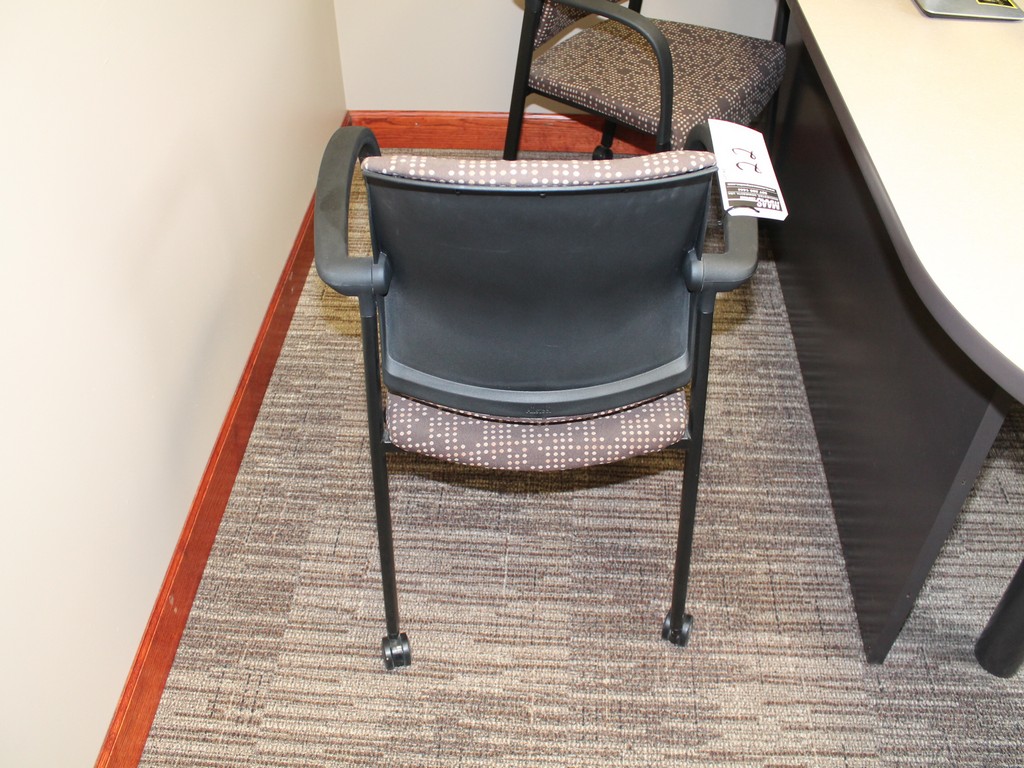 Office Chairs; (2) Padded Side Chairs on Rollers and (1) Desk Chair, 5-Roller Base, Armrests.