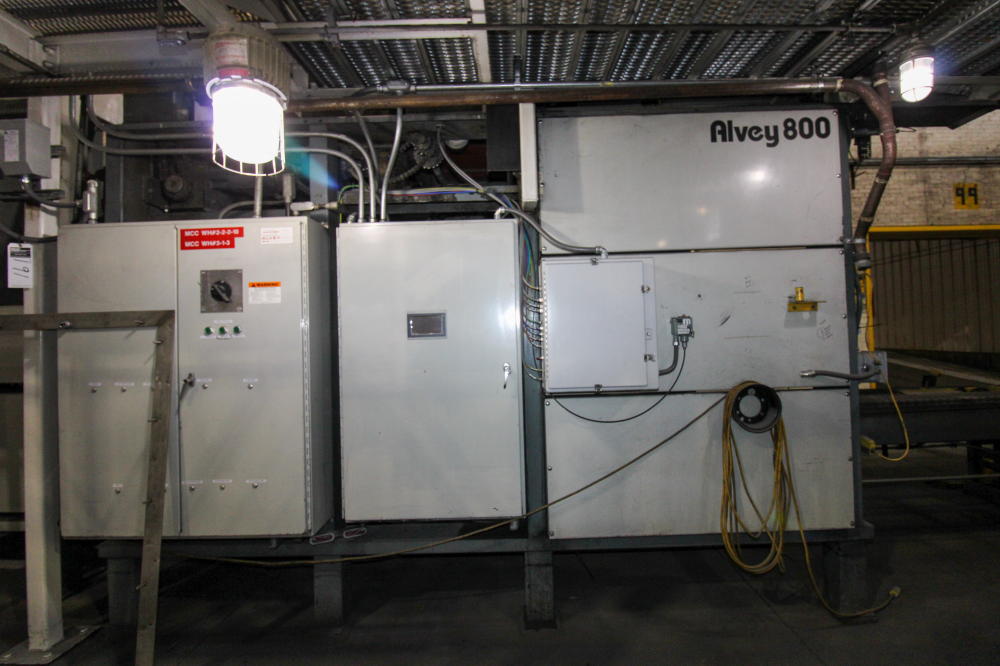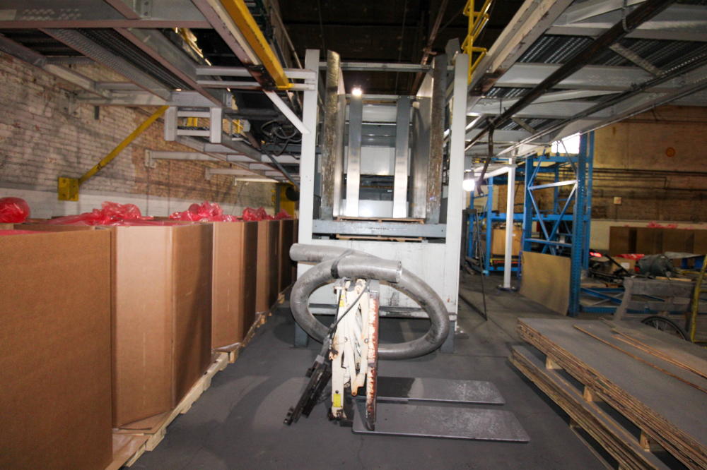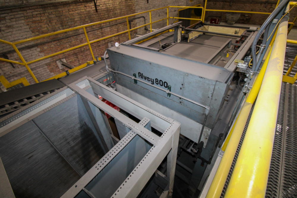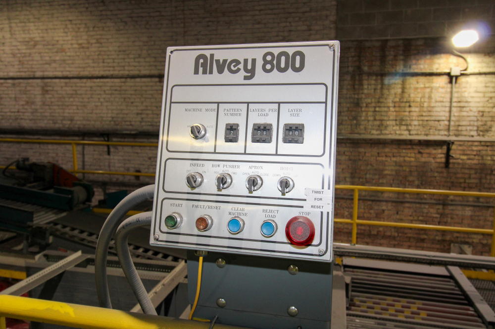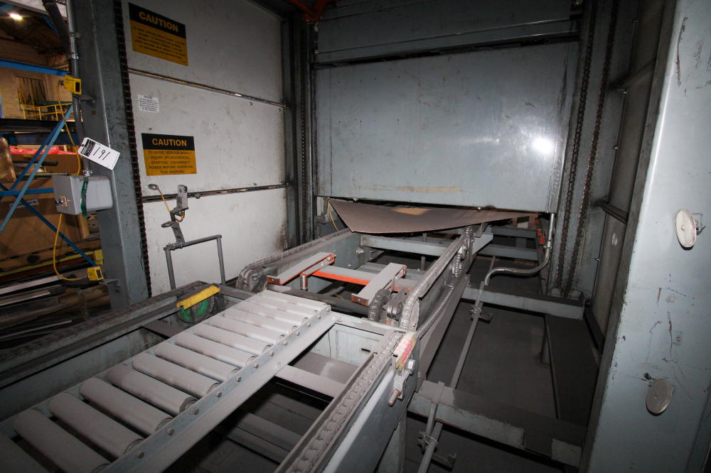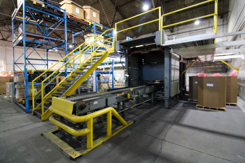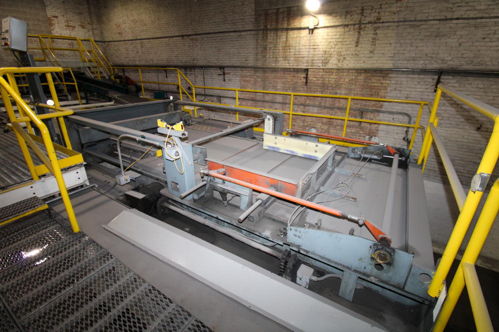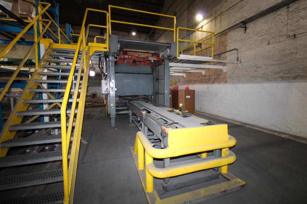 40" x 48" Pallets, 48"W Cross Roller Conveyor to Accumulator, Auto Stacker, Discharge Conveyor, Steel Work Catwalks and Stairs, 460-Volt