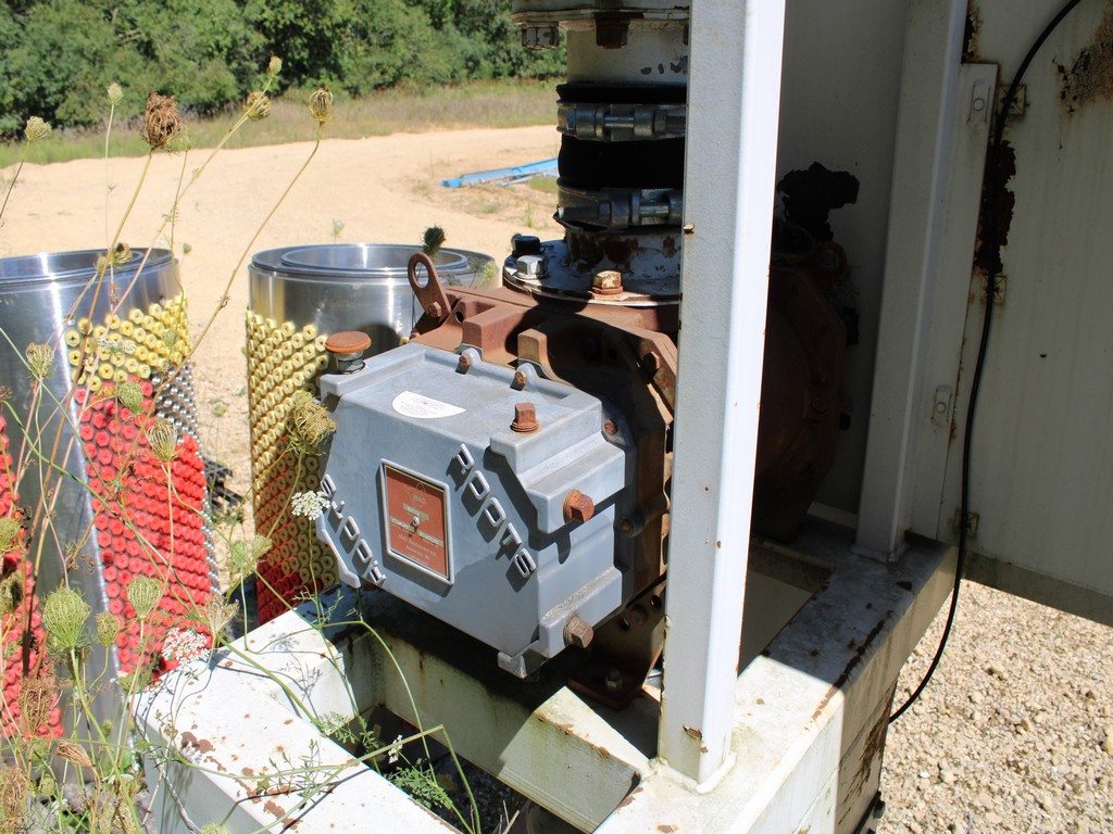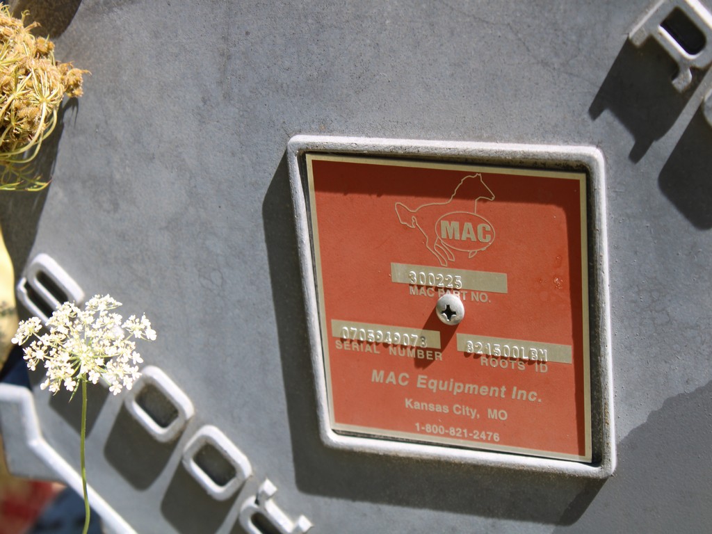 MAC/Roots 821500LBM Blower, SN 0705949078; Baldor 50-HP Electric Motor, Cat. No. EM4115T, Frame 326T, SN C060 1210133; Mounted on Mild Steel Stand and Frame.