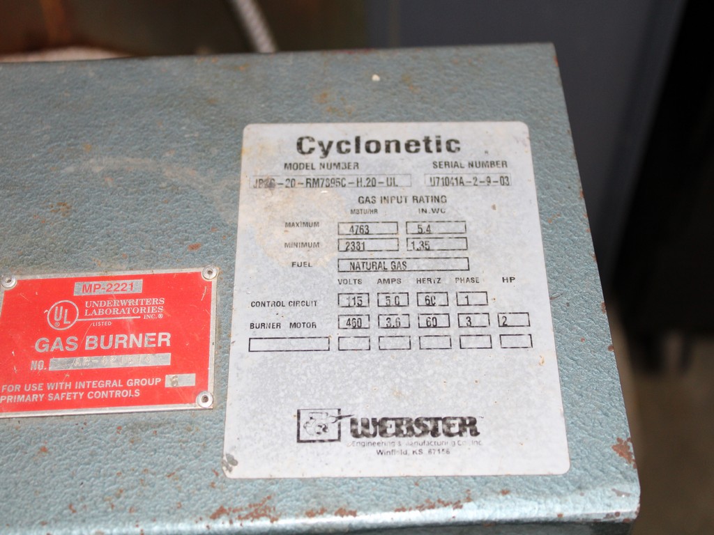 Natural Gas Fired, (15) Sections, 120?" Jacket Length, 3820 MBH Output, WEBSTER Cyclonetic JB2G-20-RM7895C-H.20-UL Burner, 4763 MBTU/Hour, sn U71051A-2-9-03.