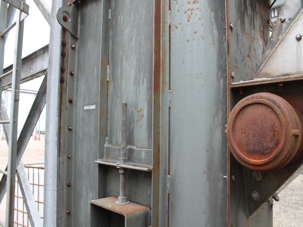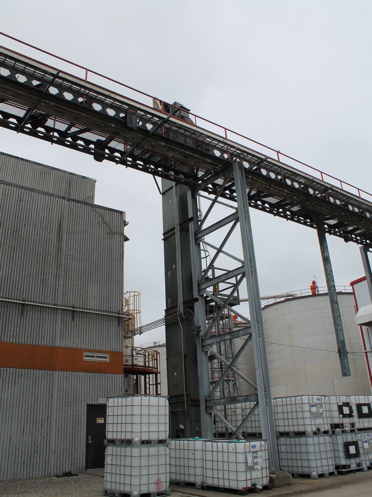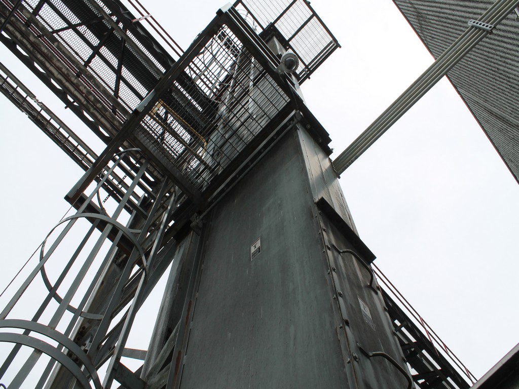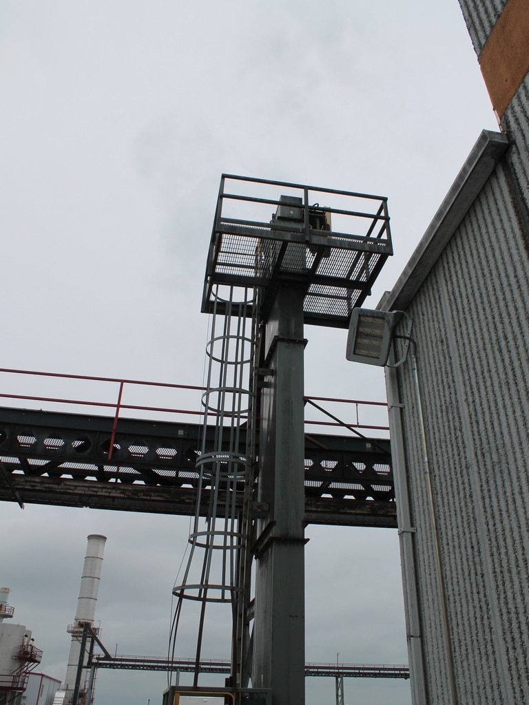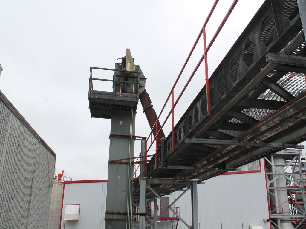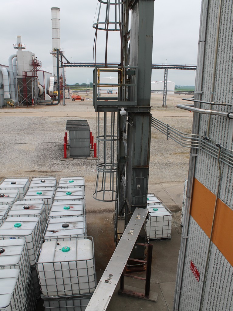 No. BE-615 Bucket Elevator, Continuous Discharge, 14" x 42" Steel Casing, 37'-11"H Discharge, (130) 8" x 5" Style MF Nylon Buckets, TEFC 3-HP Drive Motor with a Dodge SPD Gear Reducer, Cotterman 2-Stage Ladder with Safety Cages. NOTE: Does Not Include Pelco Security Camera.