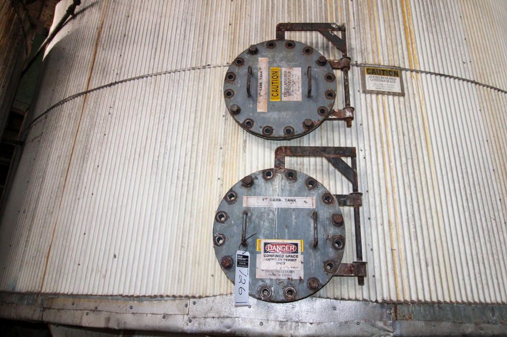 CONSISTING OF BUT NOT LIMITED TO: Main Carbonation Tank, Mild Steel, Vertical, Cone Bottom, Estimated 15' Diameter x 30'H, Man Entry Ports, Outlets and Inlets, Insulated; 4x6 Pump, SN PF6097-1 with Estimated 30-HP Electric Motor; Approx. 12" Pump with Estimated 50-HP Electric Motor; Various Valves and Pipes; Approx. 4' Diameter x 15'H Tank, Mild Steel, with Pump and electric Motor; Goulds MTX Pump with Estimated 20-HP Electric Motor; Mild Steel Tank, Estimated 5' Diameter x 8'H, Enclosed, Vertical, Man Port, On Legs; Goulds 20WH Pump, SN PE734 th Electric Motor; Goulds 3196 3x4 Pump, SN 795B171.1, 15-HP Electric Motor; 3" Pump with Electric Motor; Quantity of (2) Back Up Carbonation Tanks, 2nd Main Tank and Auxiliary Tank, Approx. 10' Diameter x 16'H, Vertical, Insulated, Various Valve Controllers, Man Ports; Skid of (7) Valves and Valve Controllers