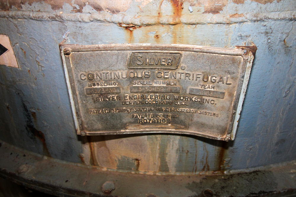 CONSISTING OF BUT NOT LIMITED TO: Quantity of (4) Silver Continuous Centrifuges, Estimated 47" Diameter x 30"D Chambers, top opening lid, 1200-RPMs, Estimated 75-HP Motors, 460-Volt, Frame 404T/447T: Quantity of (2) BMA K1100 Continuous Centrifuges, 1100mm x 536mm, top opening lid, 1200-RPMs, Estimated 75-HP Motors, 460-Volt, Frame 404T/447T