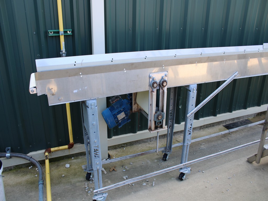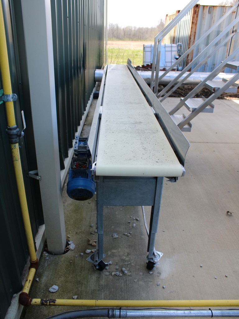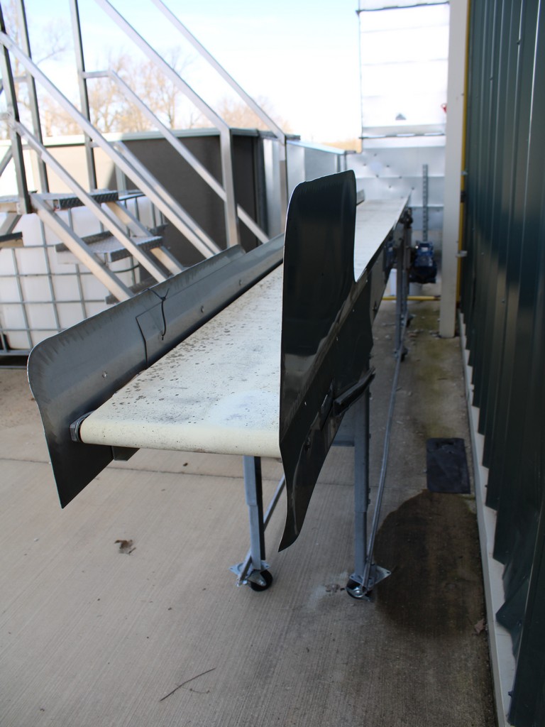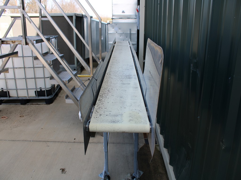 12"W x 14?'L Rubber Belt Conveyor, Metal Sides, On Legs, Portable, 1?-HP Motor.