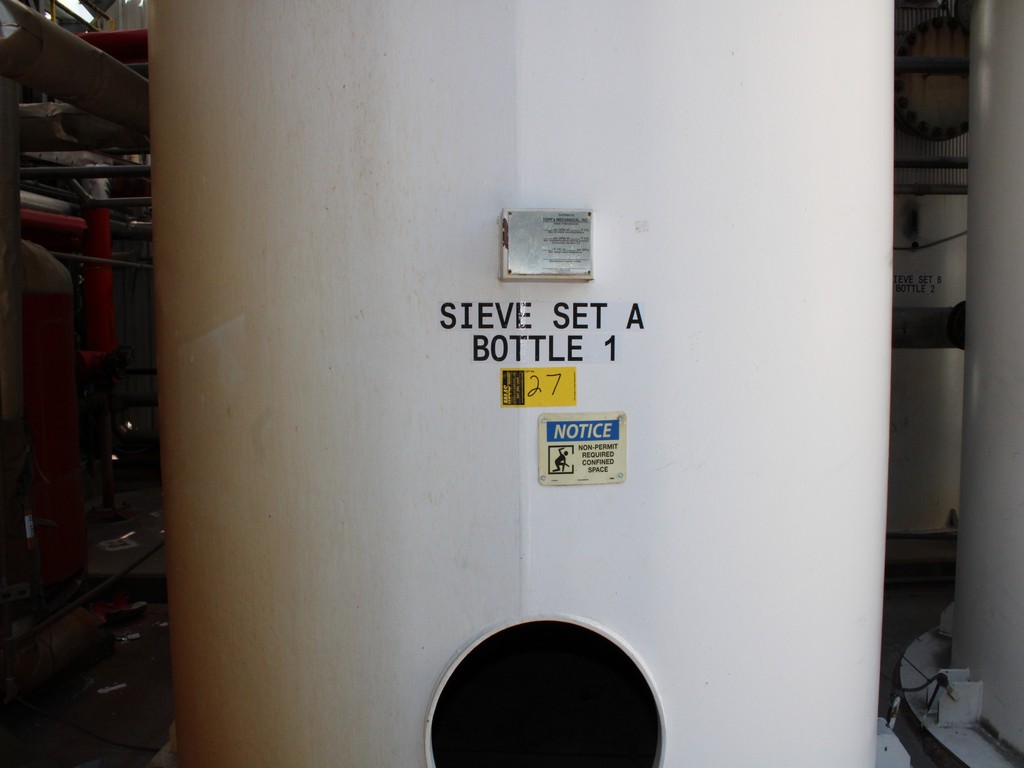 Sieve Set A Bottle 1, 2007, Carbon Steel, 90" Diameter Tank, 288" Long Tank Body, 7,930 Gallons, Dome Top and Bottom, Manway and Base Ring, (2) 90" Diameter 0.028" Size 304 SS Wire Mesh, 6" and 4" Bottom Outlets, (2) 10" and (1) 18" Top Outlets, Design: 75-PSI Full Vacuum, 350deg. F Temperature, Operation: 50-PSI Full Vacuum, 300deg. F Temperature, Empty Weight 19,200 lbs. NOTE: Unit has been removed from service since photos were taken and is now located in the West storage yard.