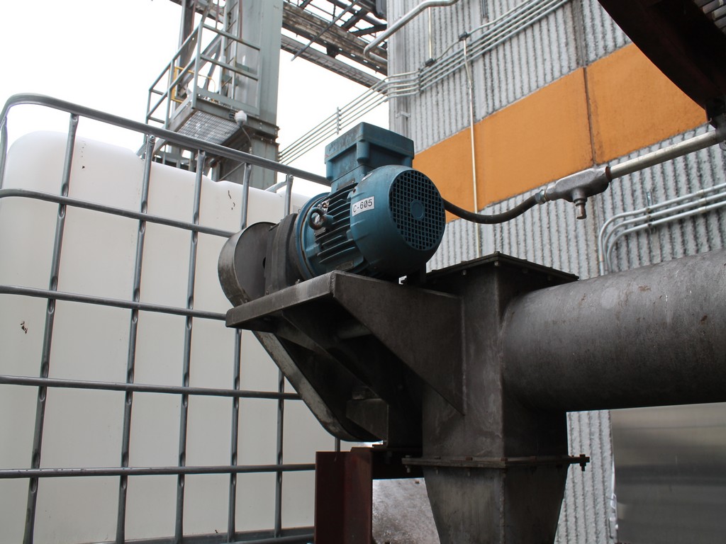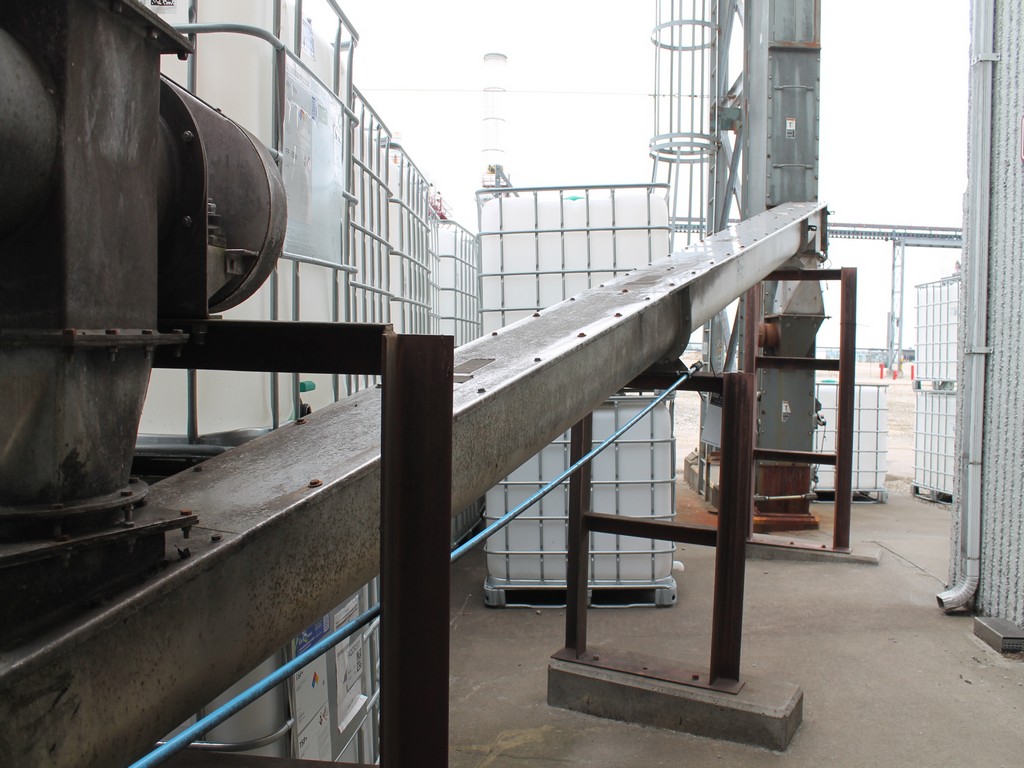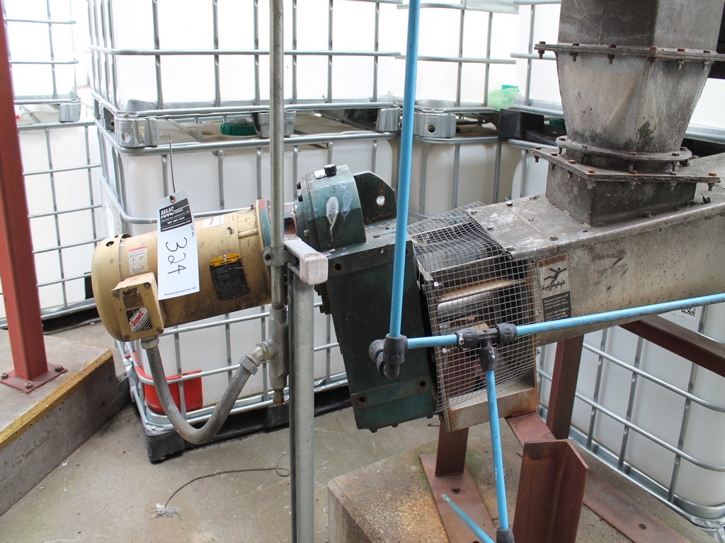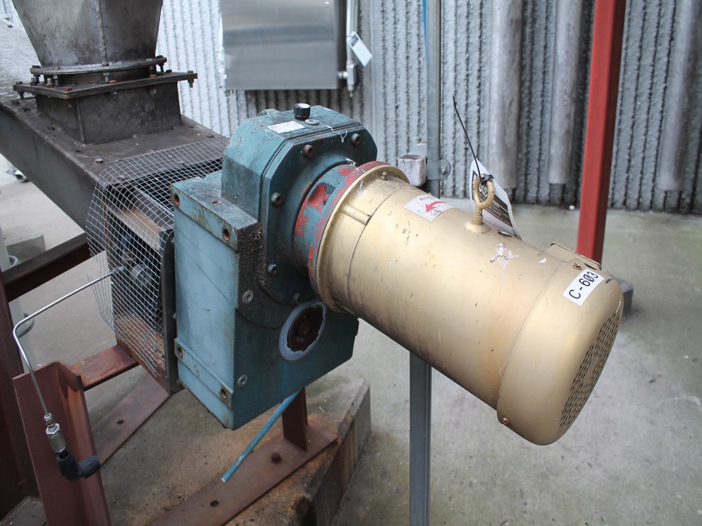 9"W x 34'L, Round Bottom, 132 CFH, Stainless, First 12' are Horizontal with Discharge Chute to Last 18' Which are on a 20 deg Incline; Horizontal Section has Weg 3-HP Electric Motor, Incline Section has Baldor Reliance 5-HP Electric Motor; Mounted on (3) Welded Steel Stands.