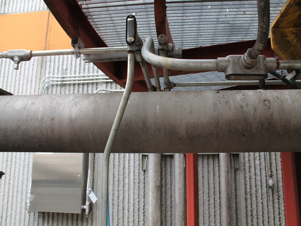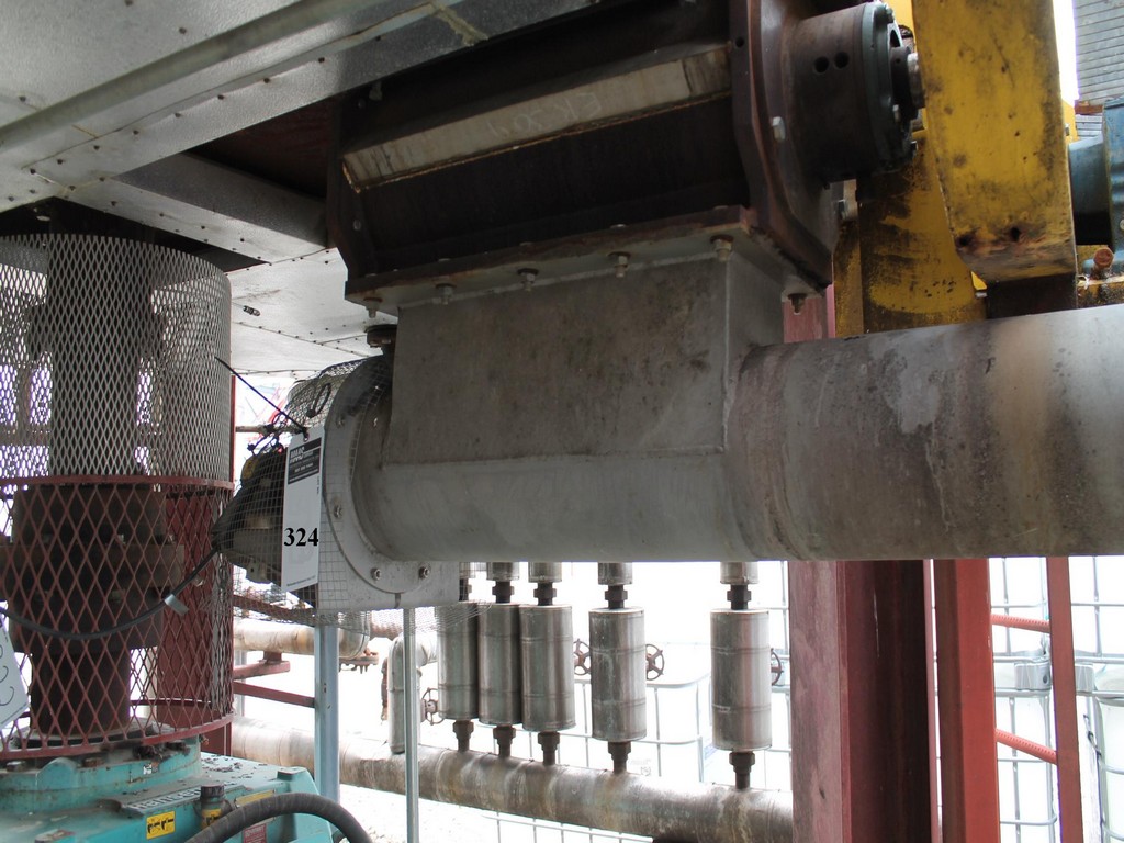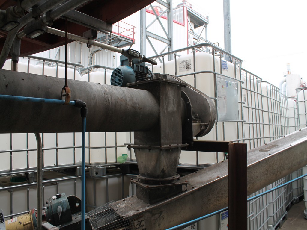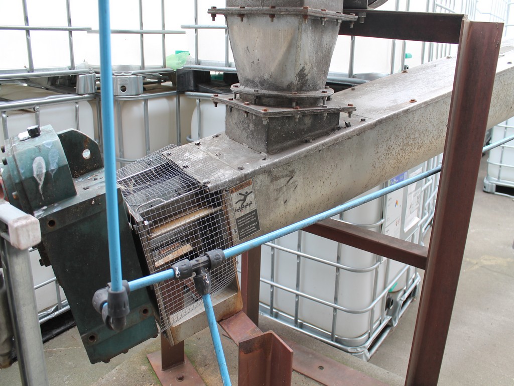 9"W x 34'L, Round Bottom, 132 CFH, Stainless, First 12' are Horizontal with Discharge Chute to Last 18' Which are on a 20 deg Incline; Horizontal Section has Weg 3-HP Electric Motor, Incline Section has Baldor Reliance 5-HP Electric Motor; Mounted on (3) Welded Steel Stands.