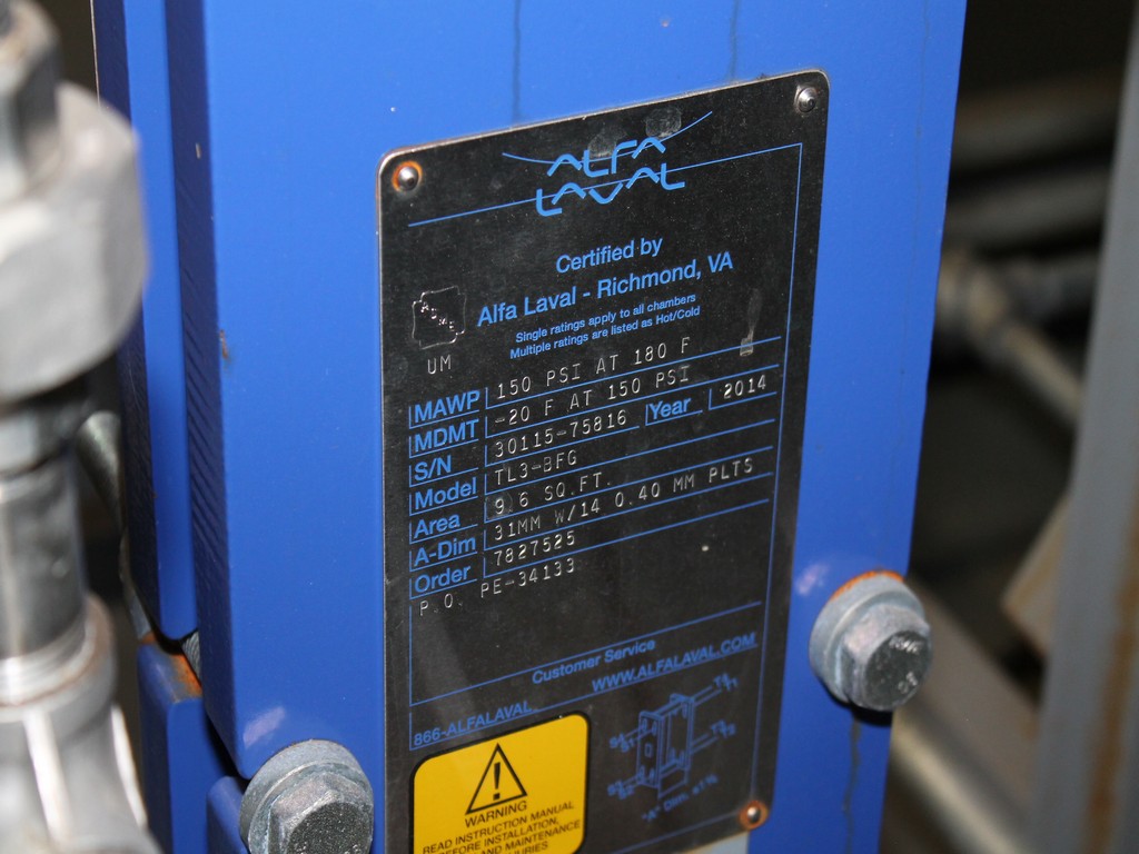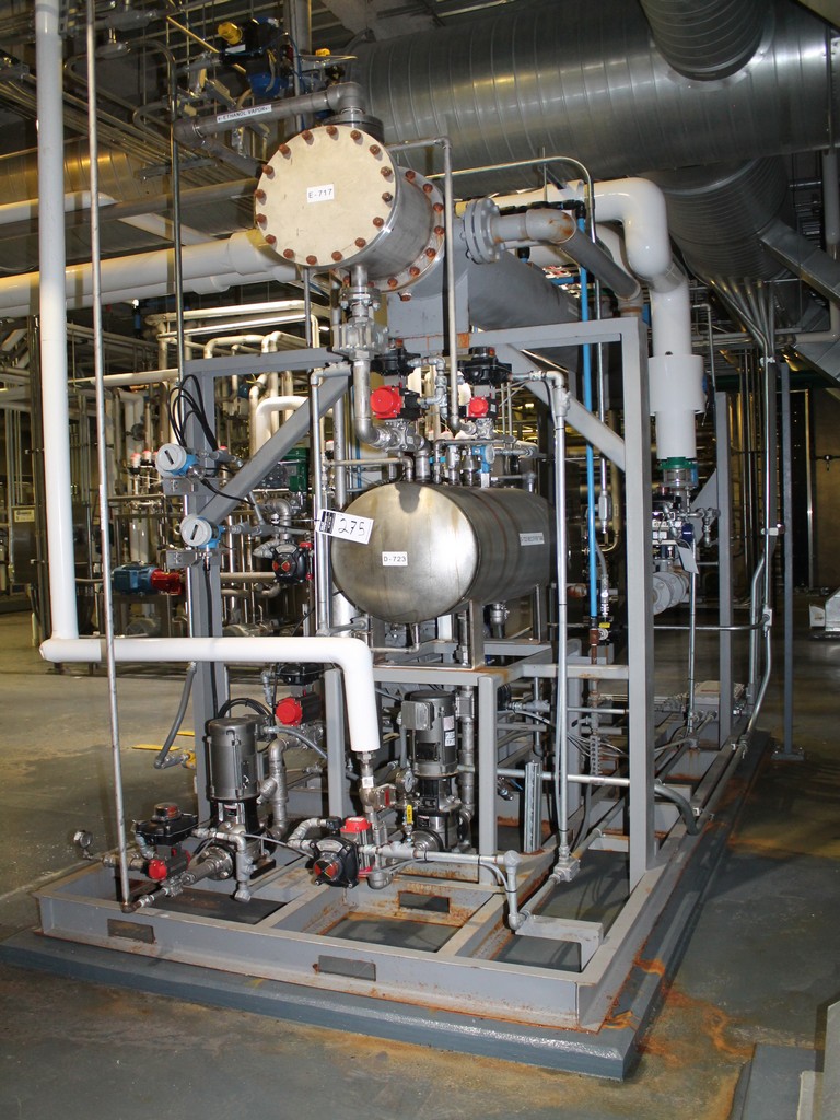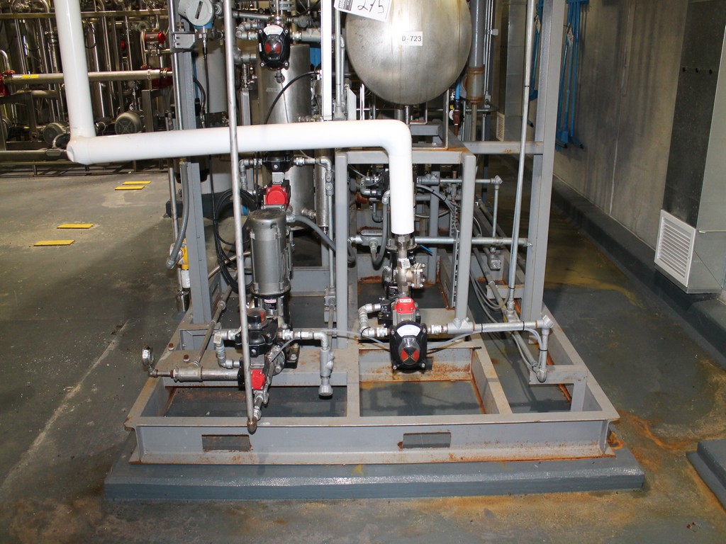 Consisting of but not limited to: 162" x 73" Skid Size; Dekker DVS014DF143S Vacuum System, SN 24146, 2014, Weg 10-HP Electric Motor, 215TC Frame Size; Endress & Hauser 72W Flow Measurement Unit; Alfa Laval TL3-BFG Plate Heat Exchanger, SN 30115-75816, 150 MAWP; Gate Valve with Fisher Actuator and Fisher Fieldvue Digital Valve Controller; Endress & Hauser Receiver; Various Flowtek Automators with Controllers; Grundfos A96081762P114280091 Pump, SN 0091, Baldor Reliance CM7005A .5-HP Electric Motor; Tank No. D-723 Stainless Reciver Tank; Bi-Torq PN100SR Double Acting Actuator with Controller; Forum ABZ Electro Pneumatic Valves; etc.