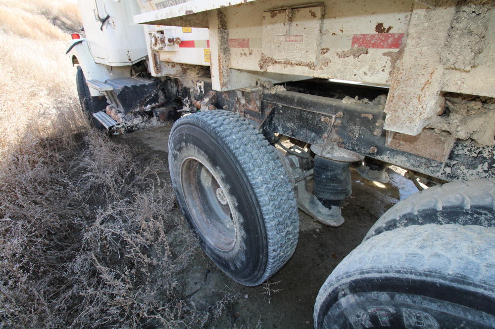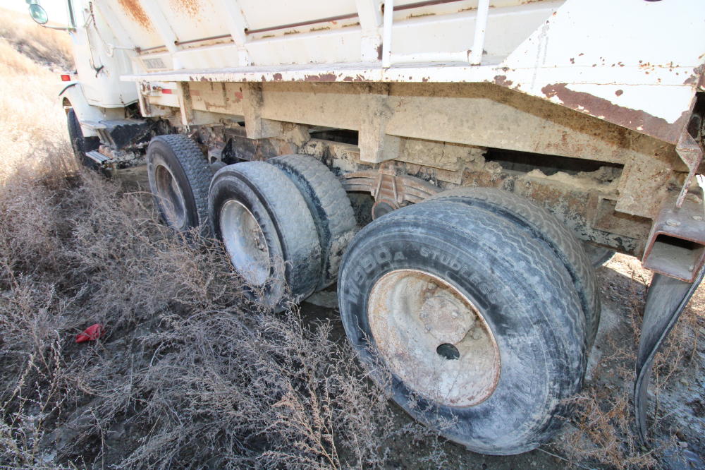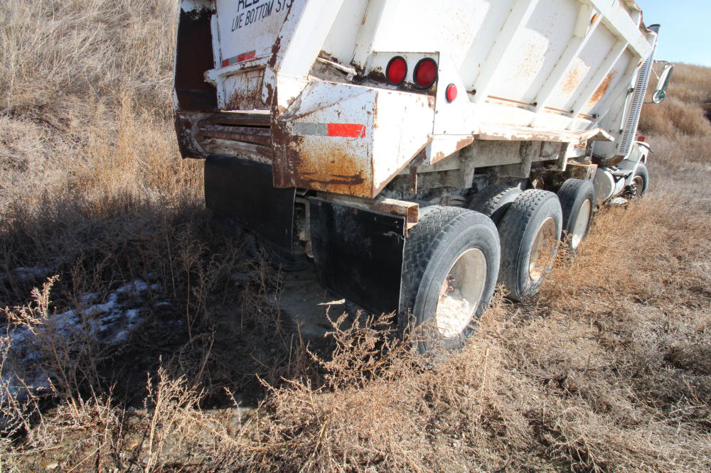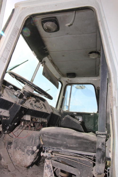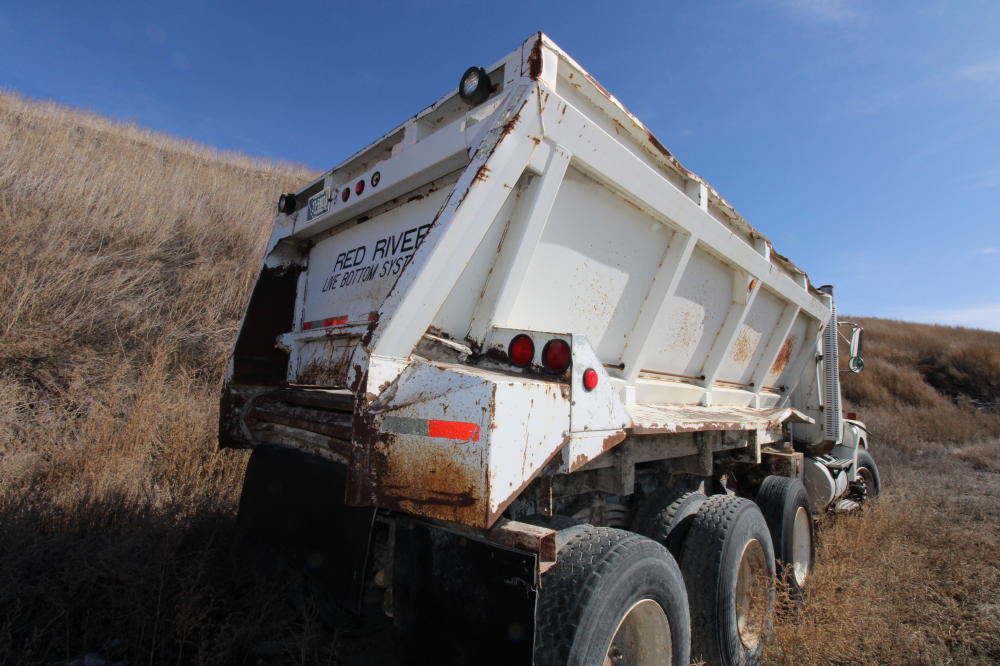 1997, Day Cab, Tandem Axle with 1 Air Lift, 212" Wheel Base, Cummins M11+ Diesel Engine, Allison HD4560P Automatic Transmission, Cruise Control, Heated Mirrors, PTO, Dual Rear Wheels; 16' Red River Live Bottom Body; Cracked Windshield, NOTE: Reportedly Does Not Run, Unknown Mileage