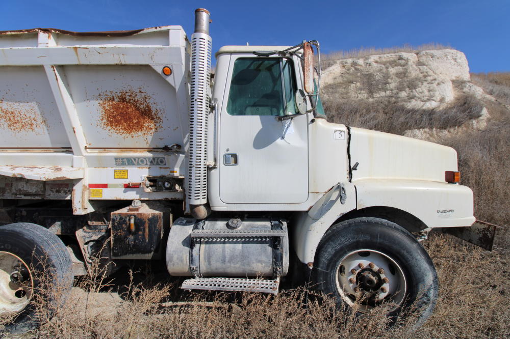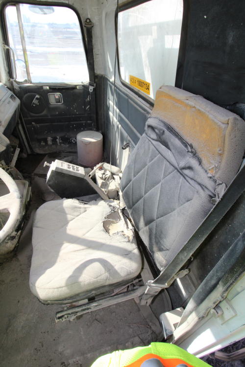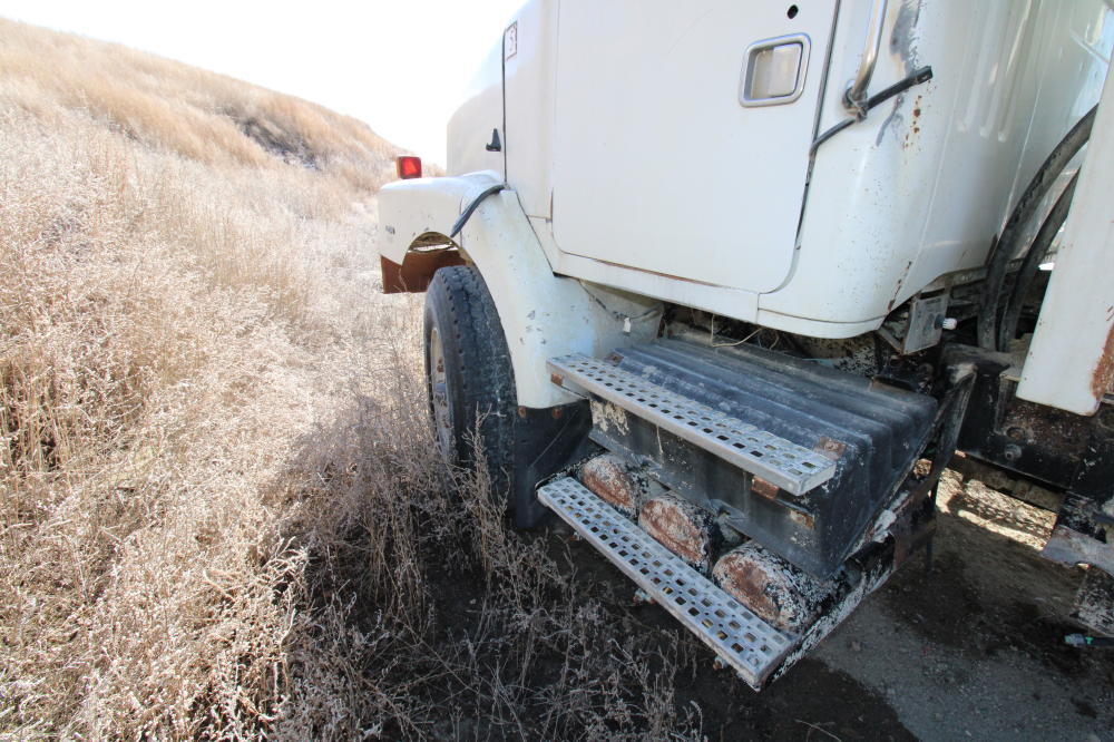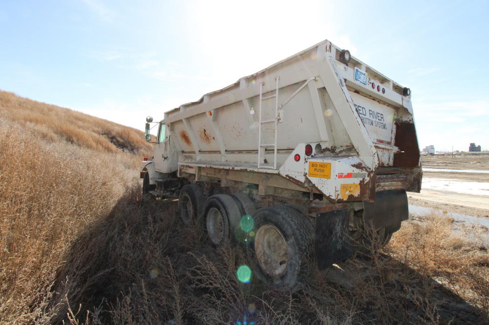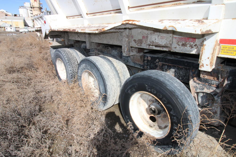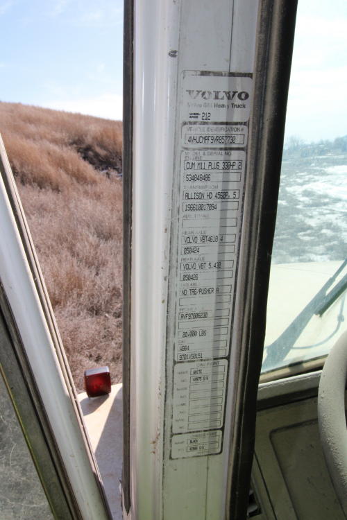 1997, Day Cab, Tandem Axle with 1 Air Lift, 212" Wheel Base, Cummins M11+ Diesel Engine, Allison HD4560P Automatic Transmission, Cruise Control, Heated Mirrors, PTO, Dual Rear Wheels; 16' Red River Live Bottom Body; Cracked Windshield, NOTE: Reportedly Does Not Run, Unknown Mileage