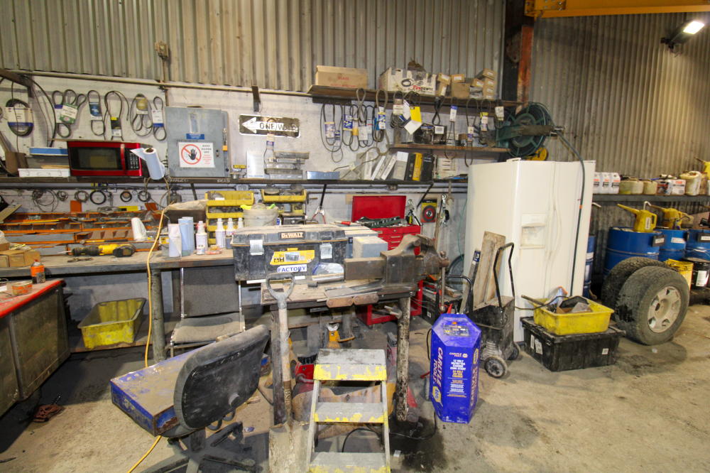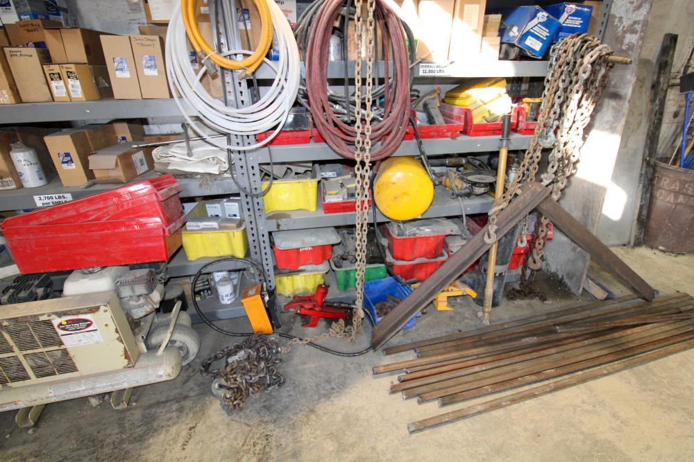 CONSISTING OF BUT NOT LIMITED TO: Metal Work Desk; (3) Metal 4-Drawer Filing Cabinets; (2) Metal 6'T Cabinets, 2-Doors; Metal 6'T Metal Cabinet; Shelving with Miscellaneous Spare Parts, Tools, Filters, etc.; Eagle 1946x 48-Gallon Capacity Flammable Liquid Storage Cabinet; Remline (9) Drawer Tool Chest; Lincoln Idealarc TM-300/300 AC/DC Arc Welder, SN: AC-180242; Acetylene Torch, Cart, Tanks; DeWalt D28715 14" Chop Saw; Air Compressor, Piston Type, Horizontal Tank Mounted; Ingersoll Rand Contractors Compressor; Harrington Tiger Track 14'L Craneway with 2200# Jib Crane, SN: 220793T; Frigidaire Side by Side Refrigerator/Freezer; Microwave; Lenovo ThinkCentre Computer Tower, Core I7, Acer 20" Monitor, Keyboard, Mouse; Avaya Handset