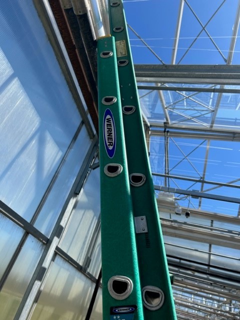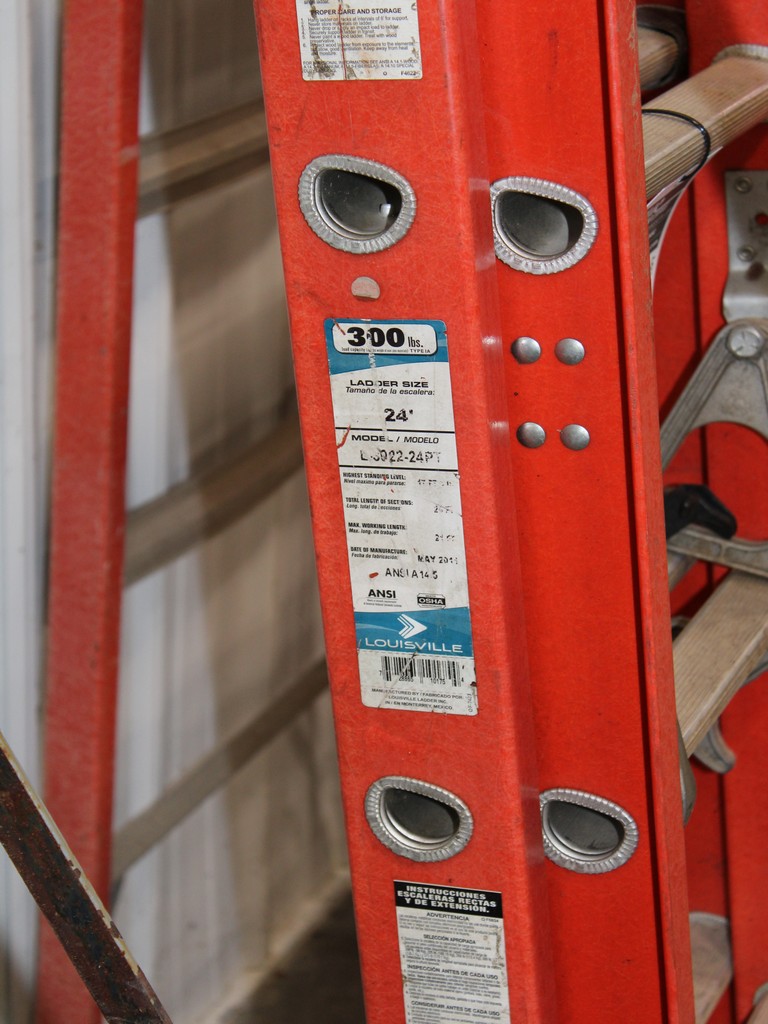 Consisting of but not limited to: 1- LOUISVILLE 24' Fiberglass Extension Ladder, 300# Capacity; 1- WARNER 20' Fiberglass Extension Ladder 225# Capacity (located in Greenhouse).