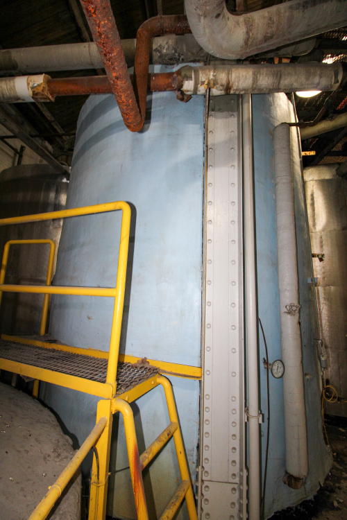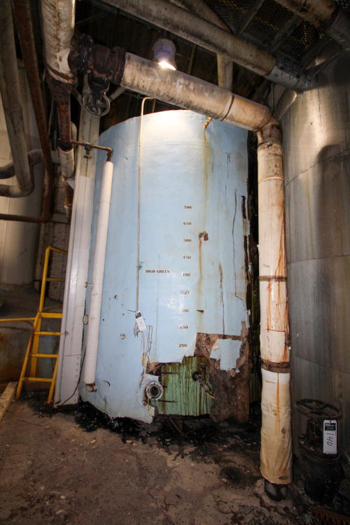 Mild Steel Tank, Estimated 10' Diameter x 12'H, Blanketed, Holds 800 to 1000-Cubic Feet, Vertical, Man Port, Outlets