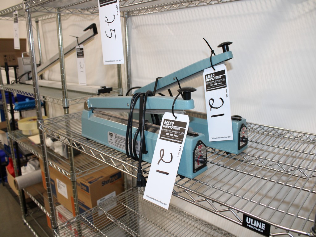 Consisting of but not limited to: (1) MERCIER CORPORATION ME-600FC, 22?"W, Foot Activated, sn 18060269; (2) ULINE H306 Heat Sealers, 17"W; 2020 HAND IMPULSE SEALER FS1000H, Approximately 40"W, sn 20BP2212000H07.