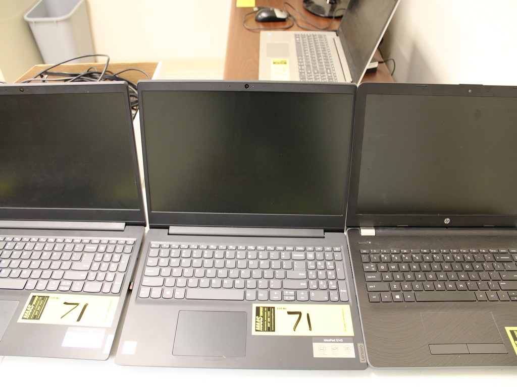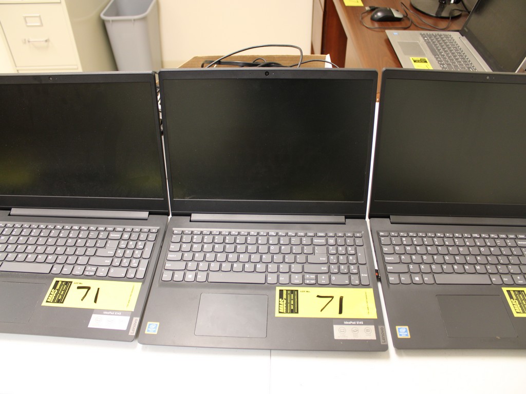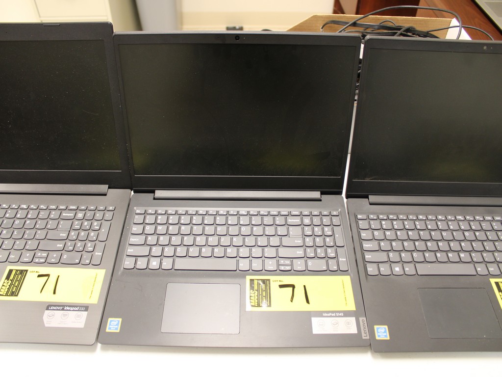 Consisting of but not limited to: (3) LENOVO IdeaPad S145 Laptops, Intel Pentium Gold, 15"W Screen; LENOVO IdeaPad 330, 8th Generation CORE I3, 15"W Screen; HP Laptop, 7th Generation Core I3, 15"W Screen.