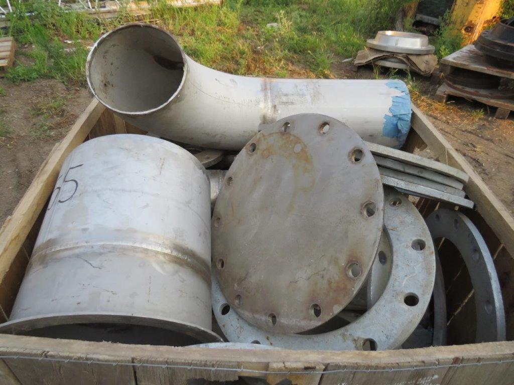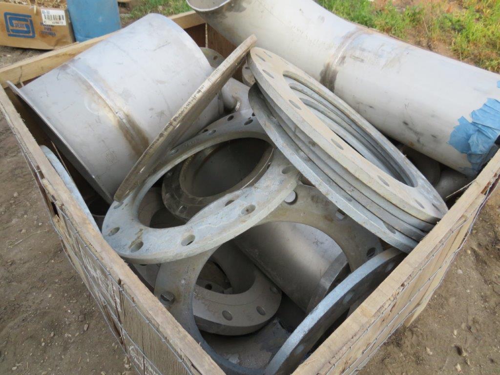 Crate to Include The Following: 1- 8" x 4" Sch 10, 304 Stainless Steel Eccentric Reducer W/ 4" Flange; 1- 3" Sch 10, 304 Stainless Steel 90 W/ Flange; 3- 6" Sch 10, 304 Stainless Steel 90 Bend; 1- 6" 150#, 304 Stainless Steel Flange; 1- 14" x 8" Sch 10, 304 Stainless Steel Concentric Reducer W/8" 150# Flange; 1- 10" x 6" Sch 10, 304 Stainless Steel Concentric Reducer W/6" Stub End; 2- 14" 150#, 304 Stainless Steel Flange; 1- 8" x 4" Sch 10, 304 Stainless Steel Concentric Reducer W/8" 150# Flange & 8" Stub End; 1- 10" Sch 10, 304 Stainless Steel 90 Bend W/ 2 150# Flanges; 1- 10" 150#, 304 Stainless Steel Flange; 3- 3" Sch 10, 304 Stainless Steel 90 Bend; 2- 6" Sch 10, 304 Stainless Steel Stub End Flanges W/Galv Back Up Rings; 1- 16" Sch 10, 304 Stainless Steel Stub End Flanges W/Galv Back Up Rings; 3- 16" Galv Back Up Rings; 3- 14" Galv Back Up Rings; 1- 20" Galv Back Up Rings.