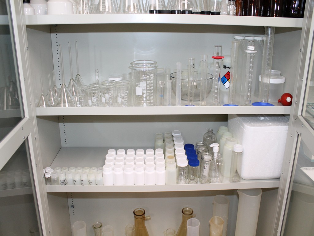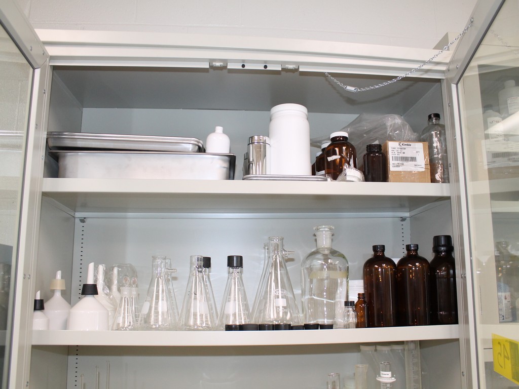 Including but not limited to: Laboratory Cabinet, (2) Doors with Glass Panels, 47"W x 84"H x 16"D, Includes Contents with Beakers, Glass Funnels, Graduated Cylinders, etc.