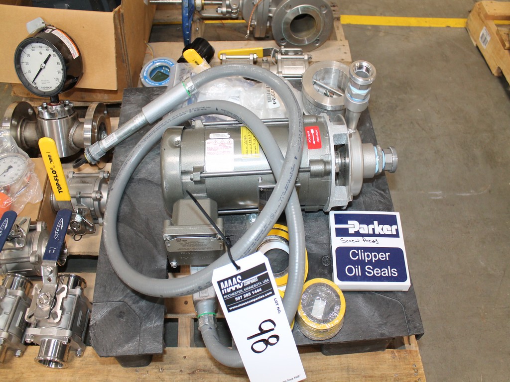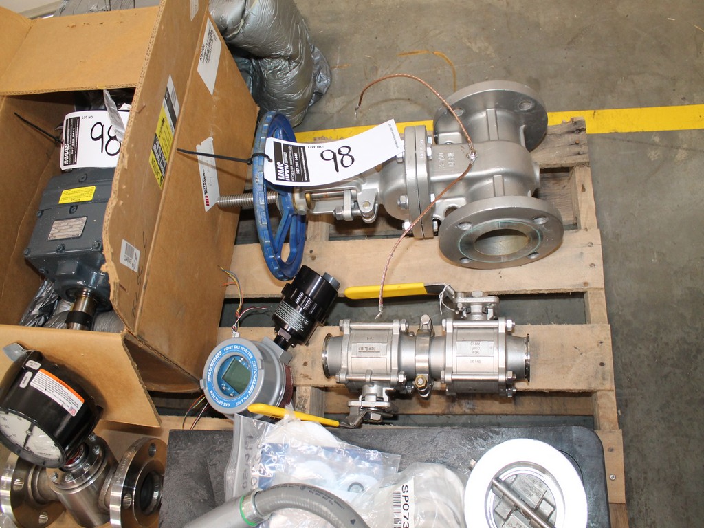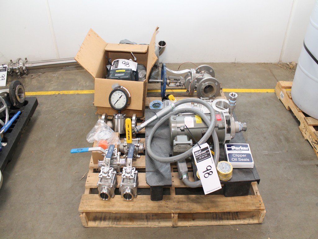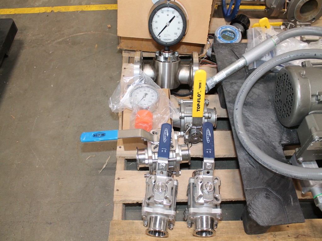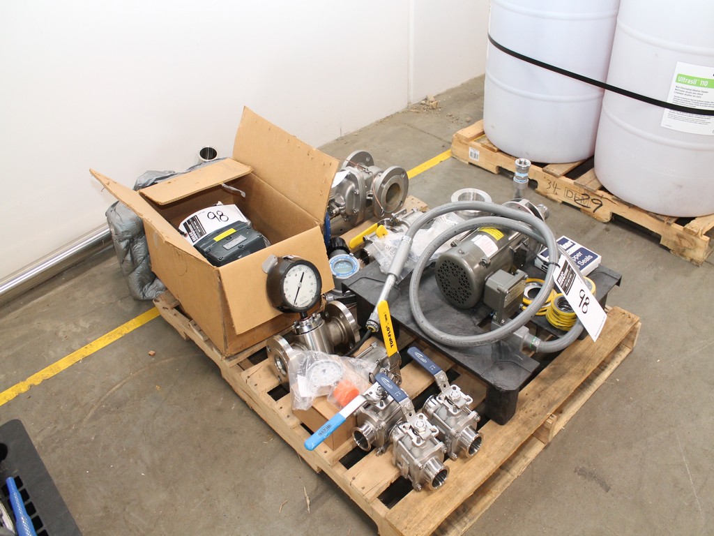 Consisting of but not limited to: Wooden Pallet, Corcoran 1" x 1" Stainless Steel Pump, Baldor 1-HP Motor; Crane 150 Duo-Check 2 Size 3 Check Valve, SN E054561, Stainless; (3) Top Line TF4 TopFlo 2" Stainless Ball Valves; Sharpe CF8M 3" Stainless Gate Valve; Unused Falk Ultra Mite 204UCBN2A14A1C Gear Drive, Rated for 5-HP Motor; Ashcroft Dura Gauge Meter Mounted on Enlin A/SA182 Coupling; Dixon CF8M 2: Stainless Ball Valve; (2) Tru-Flo CF8M 2" Stainless Ball Valves; Sensalert Plus 3-Wire Gas Detection Meter, SN 2110-1759; New Ashcroft Pressure Gauge; Various New and Used Seals; etc.