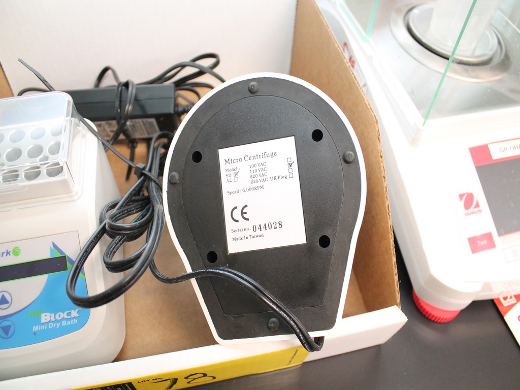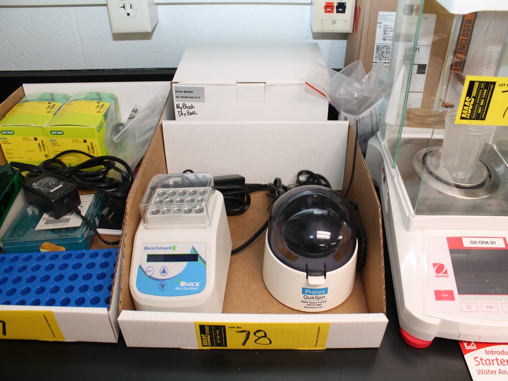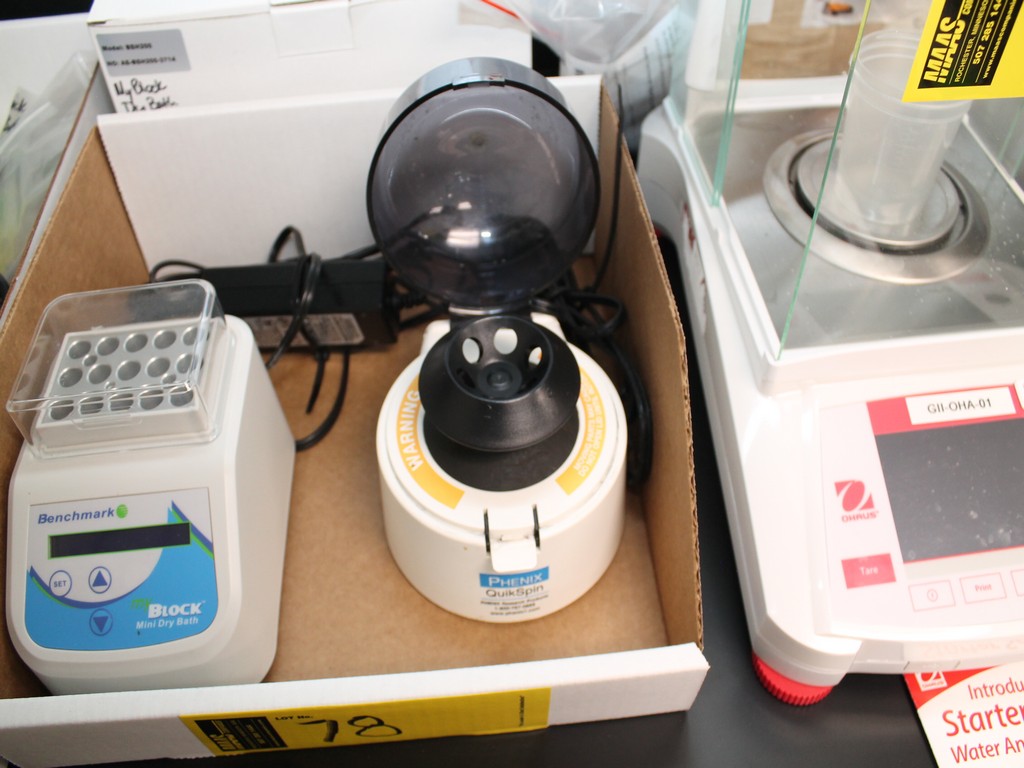 Consisting of but not limited to: Benchmark BSH200 My Block Mini Dry Bath, SN BSH200-3714, 2015; Phenix QuikSpin Micro Centrifuge, SN 044028, 6000 rpms.