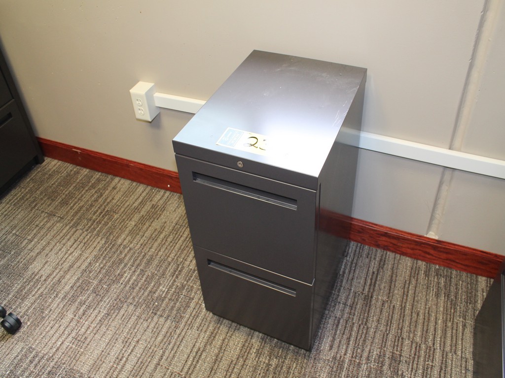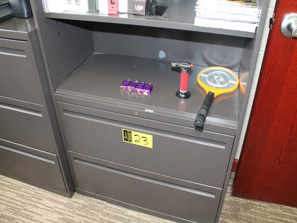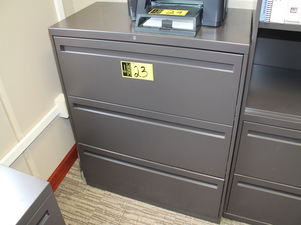 Allsteel 2-Drawer Filing Cabinet/Pedestal on Wheels, 15"W; Allsteel 3-Drawer Lateral File, 36"W; Allsteel Shelf/Lateral File Combo, 36"W, (3) Shelves and (2) File Drawers, Contents.