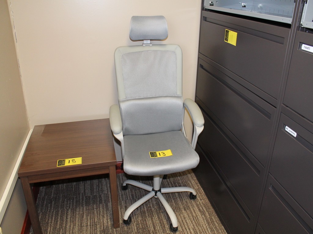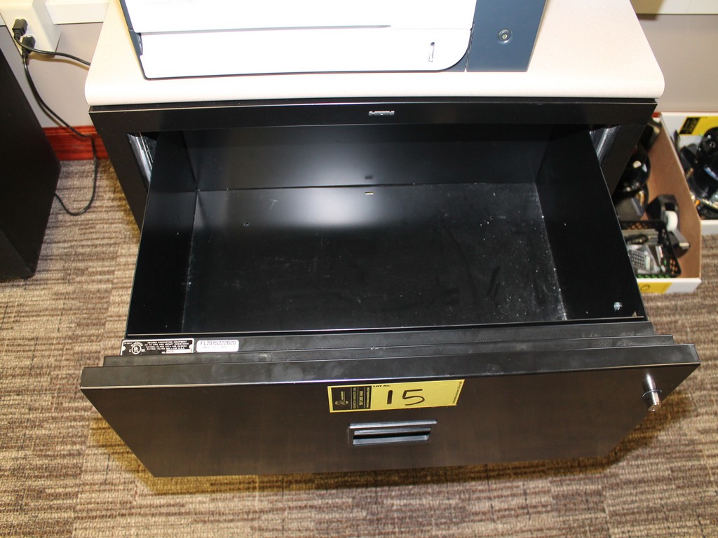 Consisting of but not limited to: Hon Steel 2-Drawer Lateral File, 31"W with 31" x 22" Laminate Work Surface Top; Side Table with Wood Grain Laminate Top; 23-1/2" x 23-1/2".