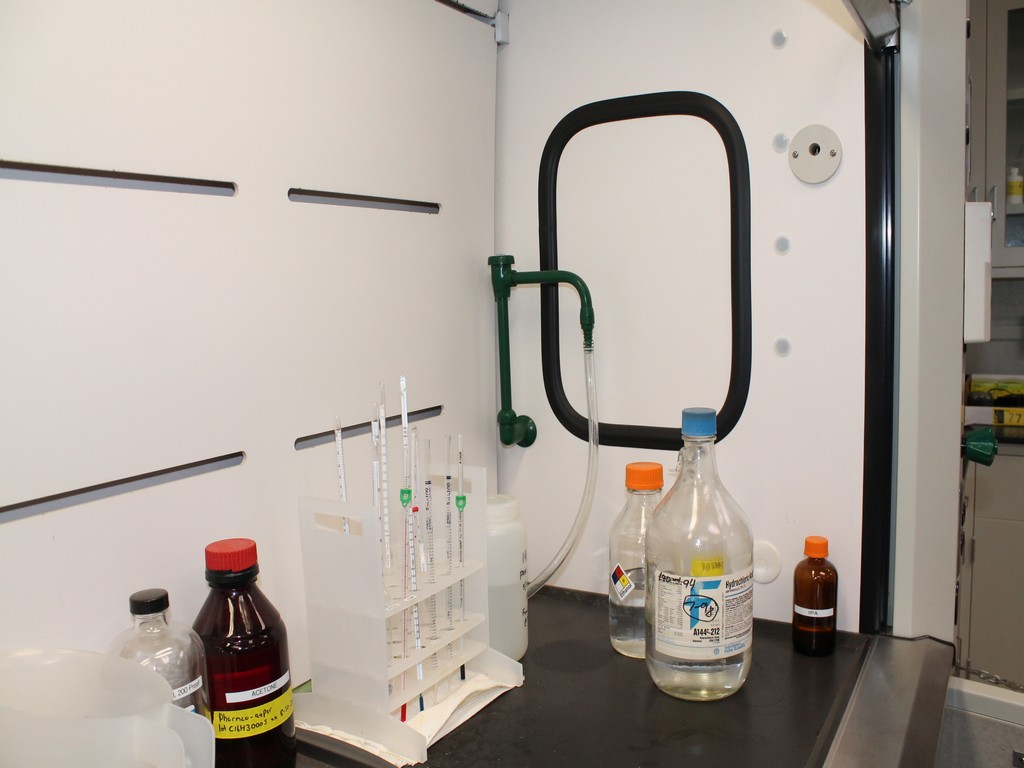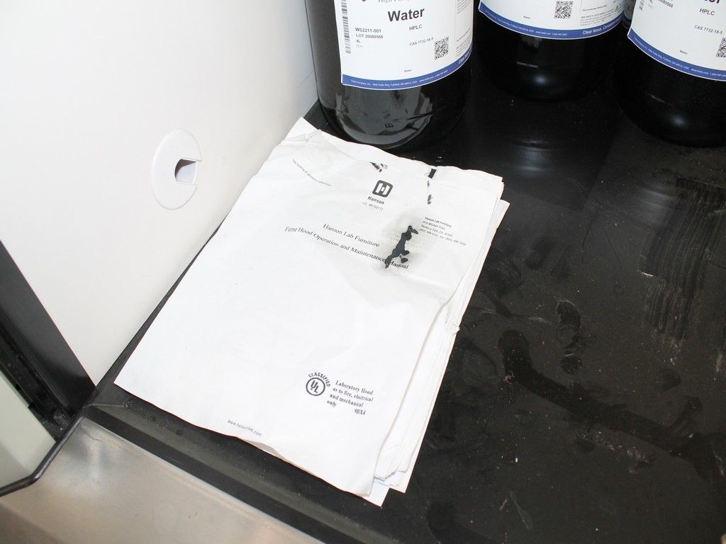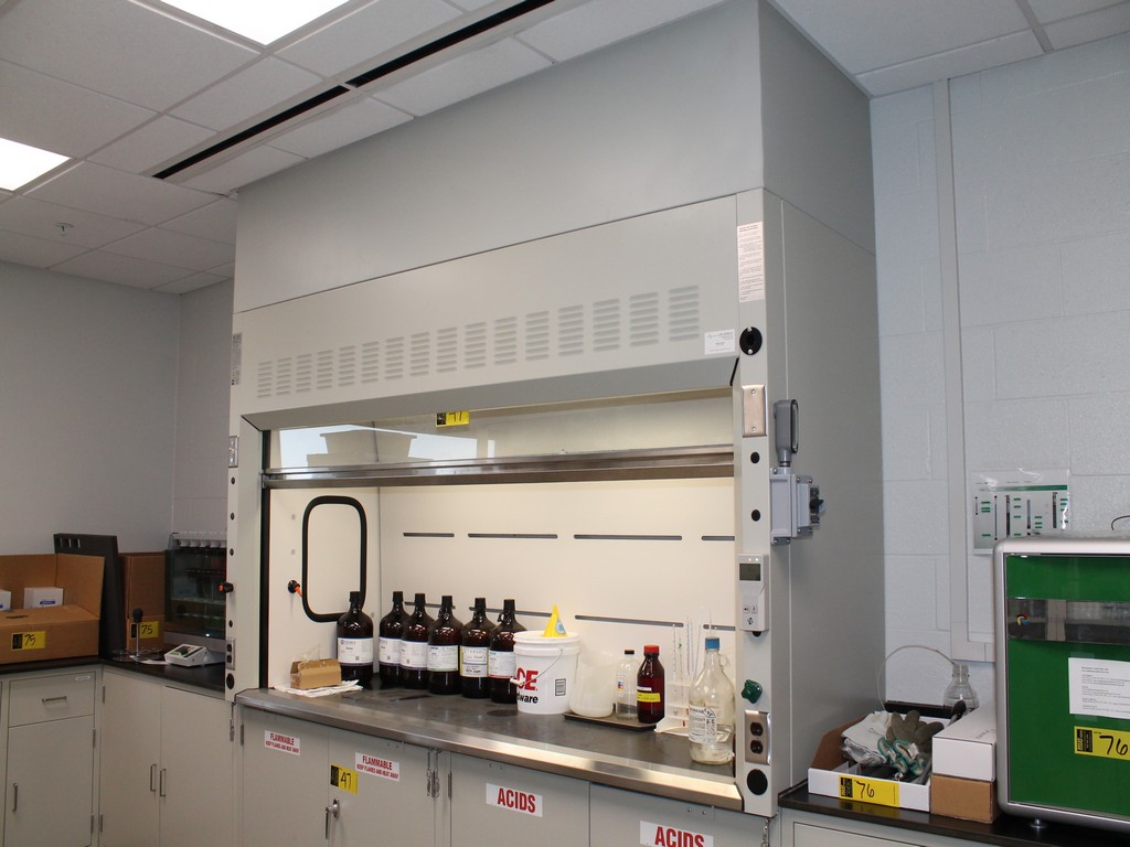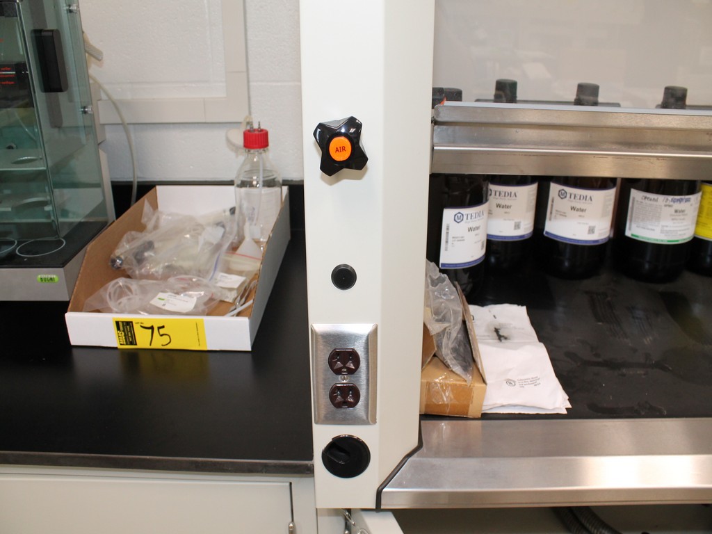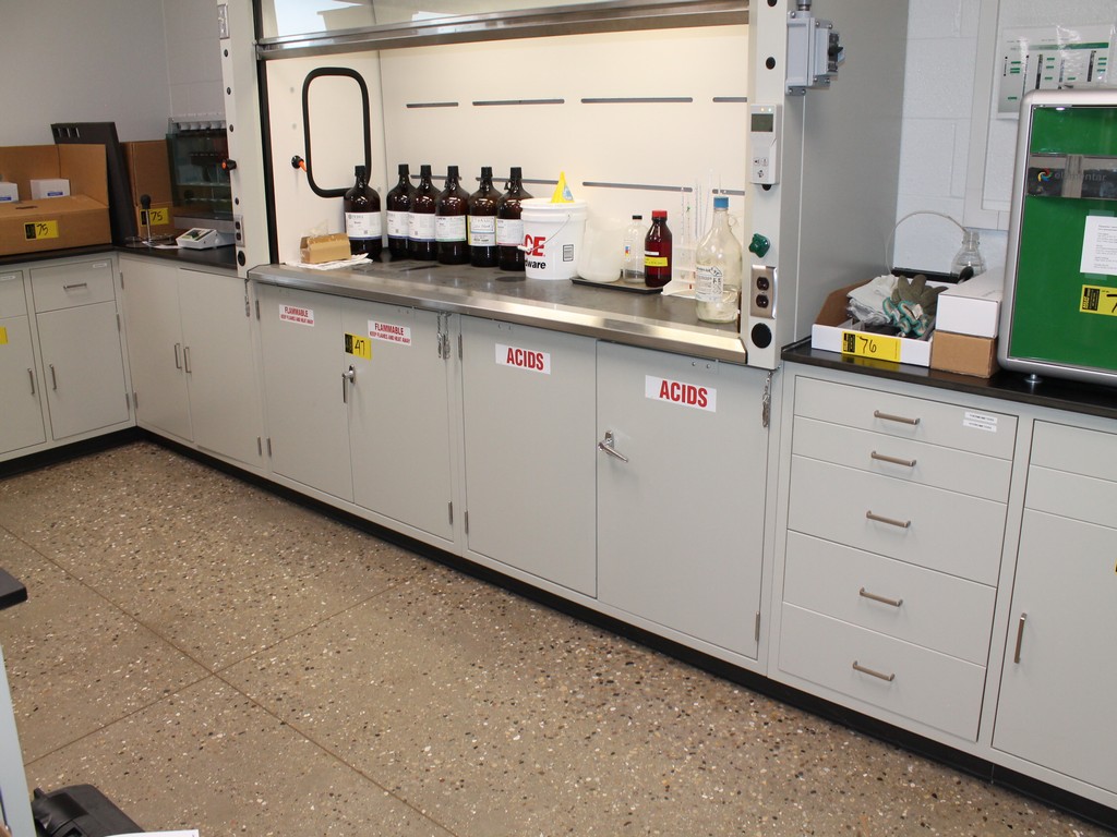 Consisting of but not limited to: Laboratory Fume Hood, 96"W, Exhaust, (2) Explosion Proof Lights, Flammable Liquid Storage Under Cabinets, Includes Miscellaneous Contents. NOTE: Buyer must have Electrical and Gas Supplies Capped, along with any Roof or Wall Penetrations.