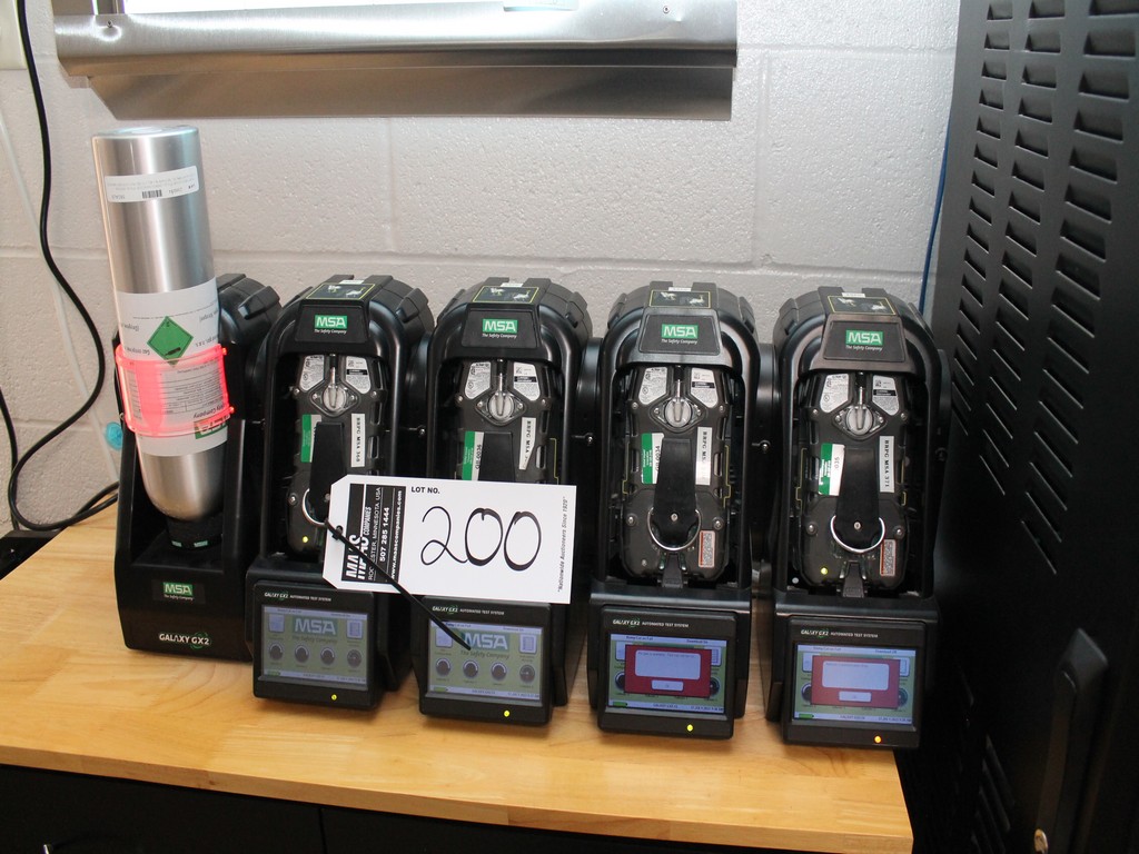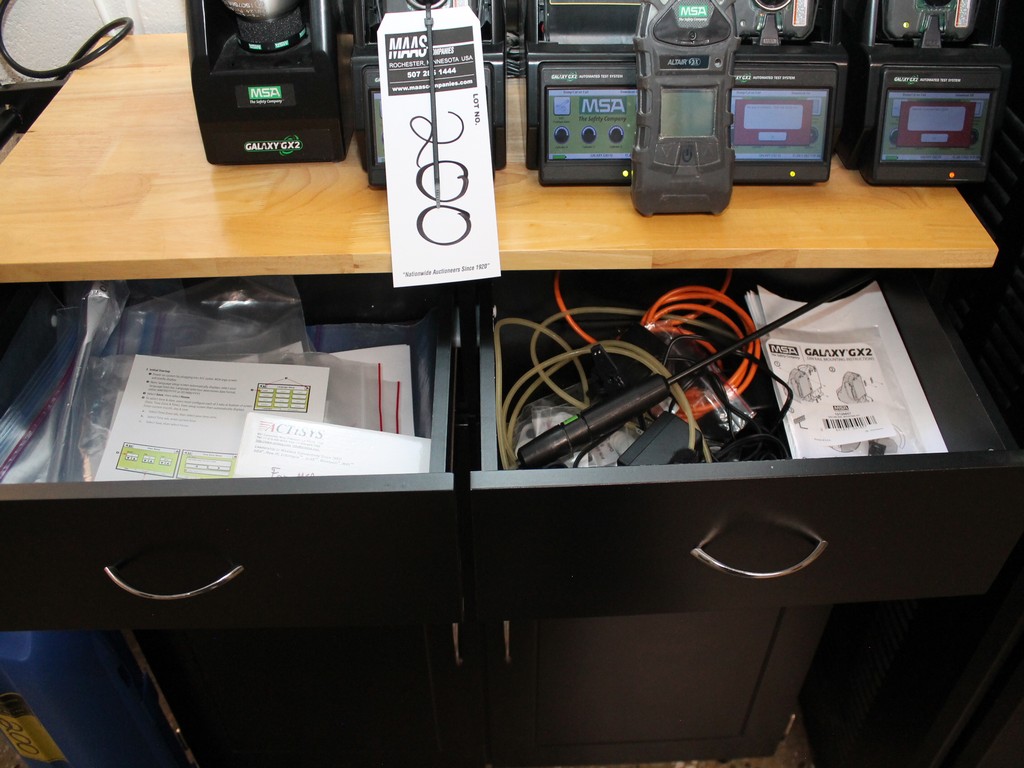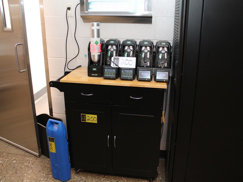 Consisting of but not limited to: Automated System for Testing/Calibration of MSA Altair/Altair Pro Single Gas Detectors of Pentane, Oxygen, Carbon Monoxide; MSA Galaxy GX2 Cylinder Holder; (4) Charging Stations, (4) Portable Detection Units; (2) Calibration Check Gas Cylinders; 2-Drawer, 2-Door Cart, 37"L x 17-1/2" and Contents; (2) Honeywell Gas Composition Cylinders, 3.6 cu. ft.