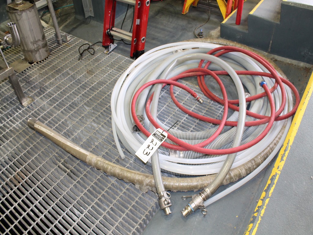 Consisting of but not limited to: (3) 2" Hoses; (1) Novaflex 6506 Food & Beveage Hose; 1" Plastic Tubing; (1) 2" Hose; Various Hoses Coiled on Walls in Tank Room with Stainless Wall Mounts.