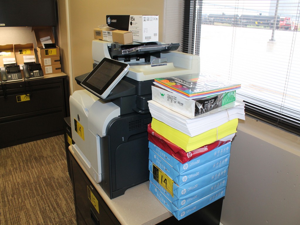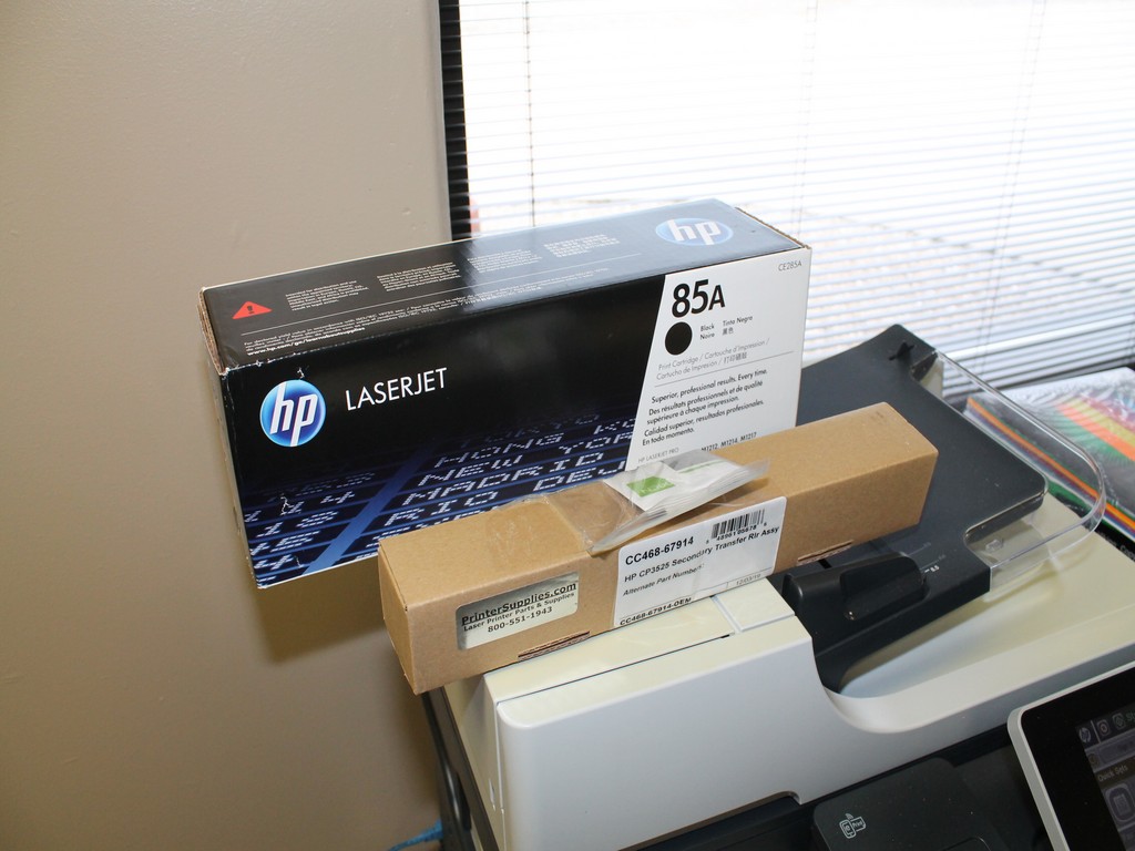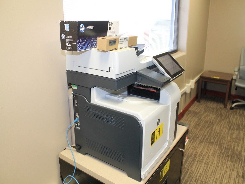 Consisting of but not limited to: Color Laser All in One Machine; (6) Reams of Paper; Miscellaneous Paper; HP 85A Black Toner Cartridge; HP CP3525 Secondary Transfer Roller Assembly.