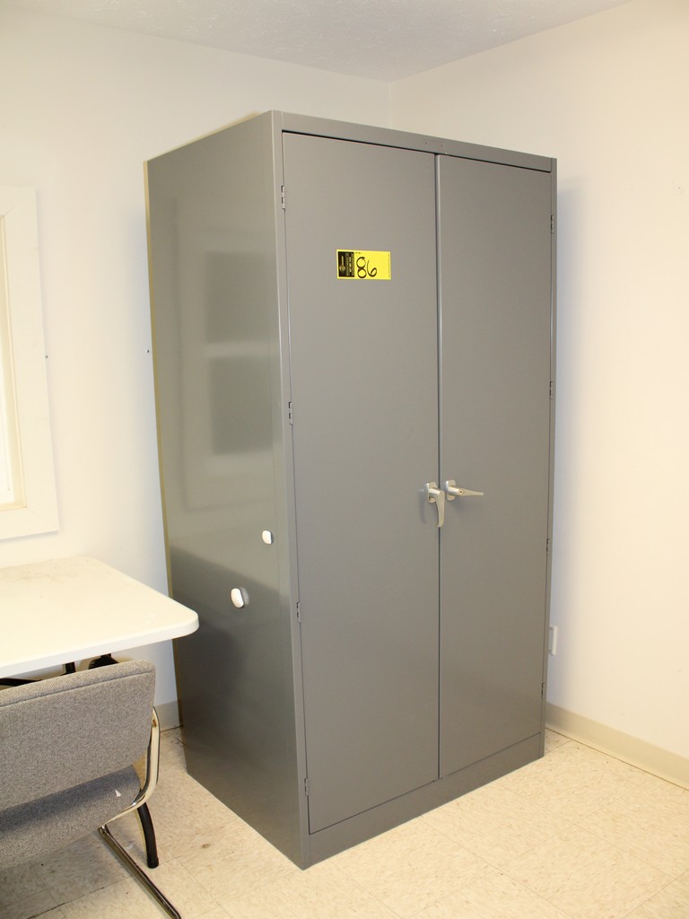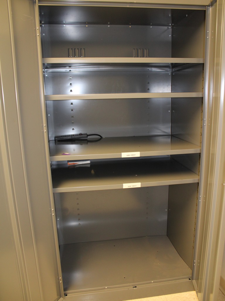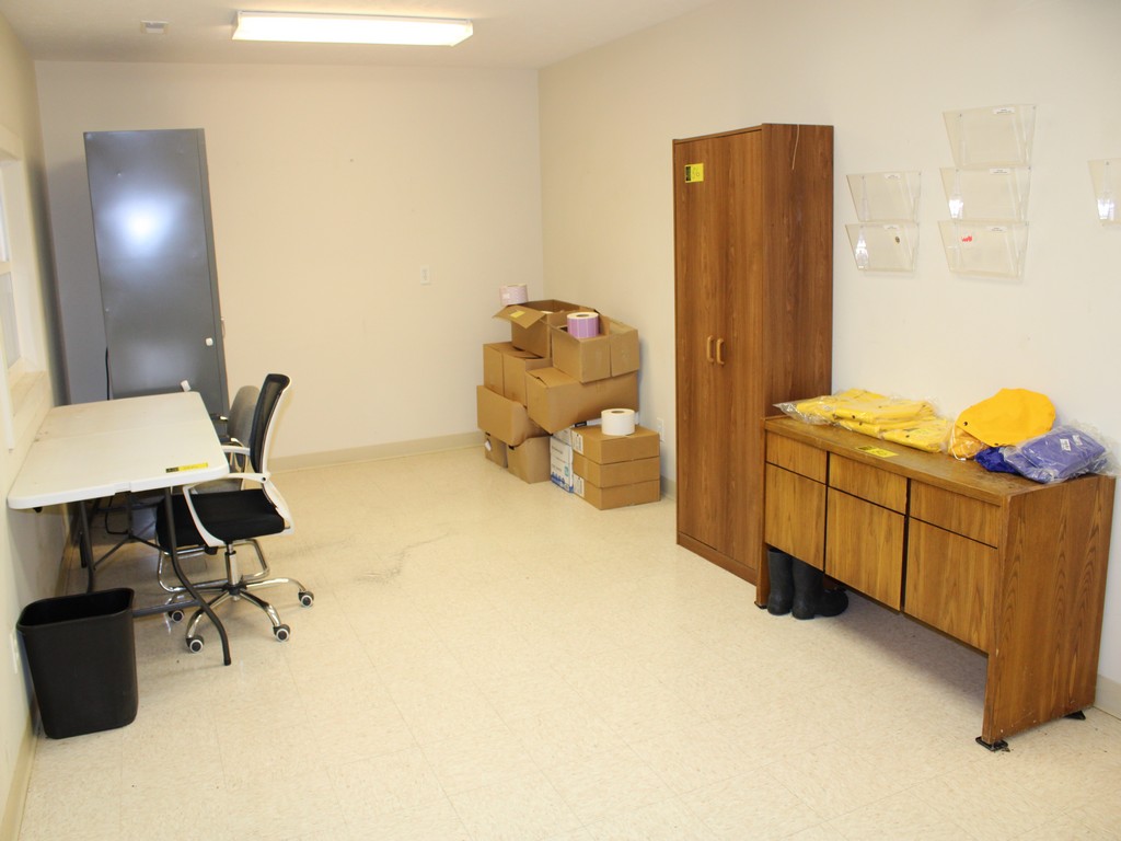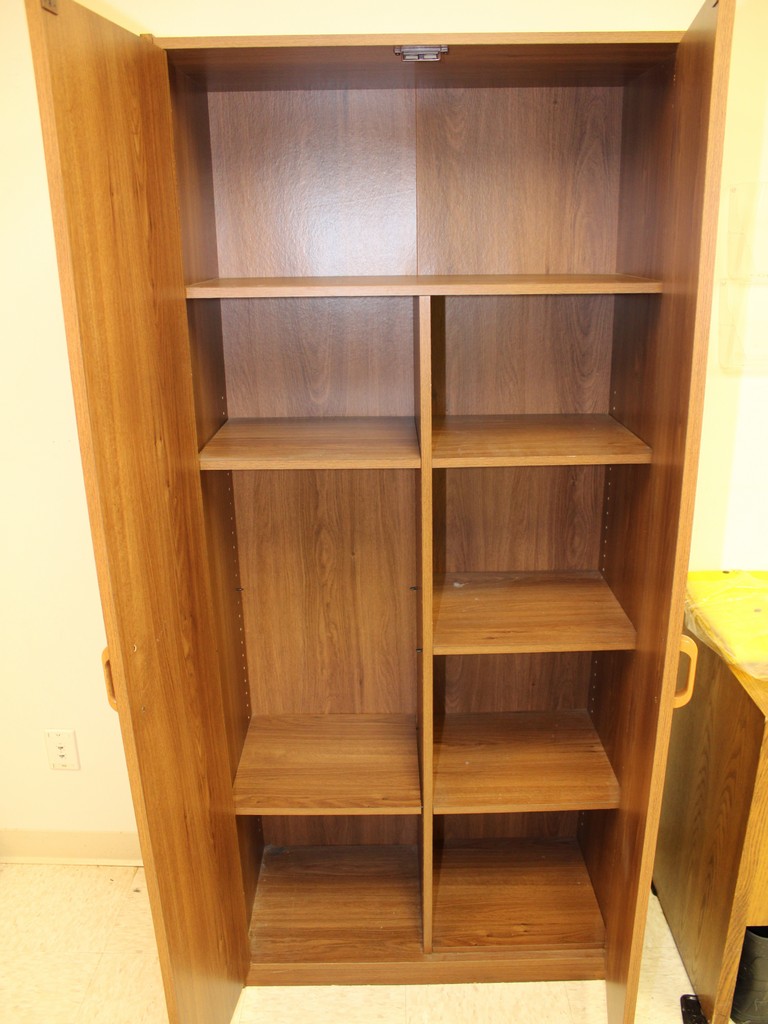 Consisting of but not limited to: COSCO 6'L Bifold Plastic Table; Executive Office Chair, Mesh Back, Arm Rests, 5-Roller Base; Padded Reception Chair, Sled Base; 3'W x 22"D x 78"T Metal Storage Cabinet, 2-Door; 49?"W x 20"D x 29"T Credenza, 6-Drawers, Wood; 29"W x 6'H Wood Cabinet, 2-Door.
