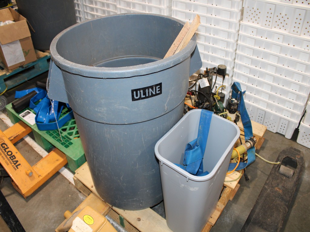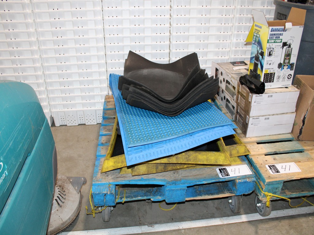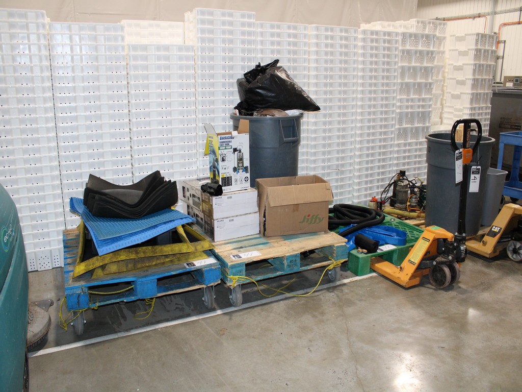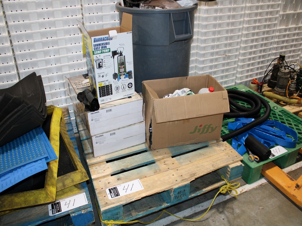 Consisting of but not limited to: ZOELLER COMPANY M53-D Submersible Sump Pump, .3-HP, 9'L Cord, 1?"; DAYTON 1XHV7 Submersible Sump Pump, ?-HP, 10' Cord, 2"; Barracuda Pump; (2) 55-Gallon Plastic Trash Barrels; 13-Gallon Trash Bin; (3) Sanitizing Mats, 2' x 3'; Blue Textured Rubber Mats; (8) Black Plastic Rubber Mats.