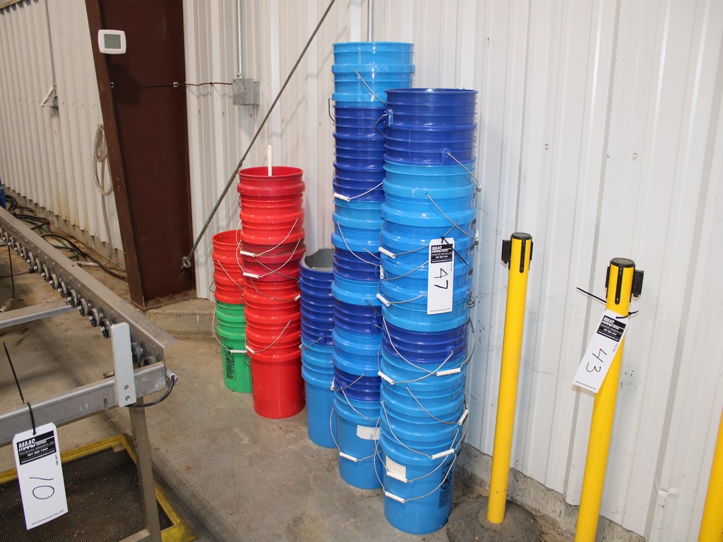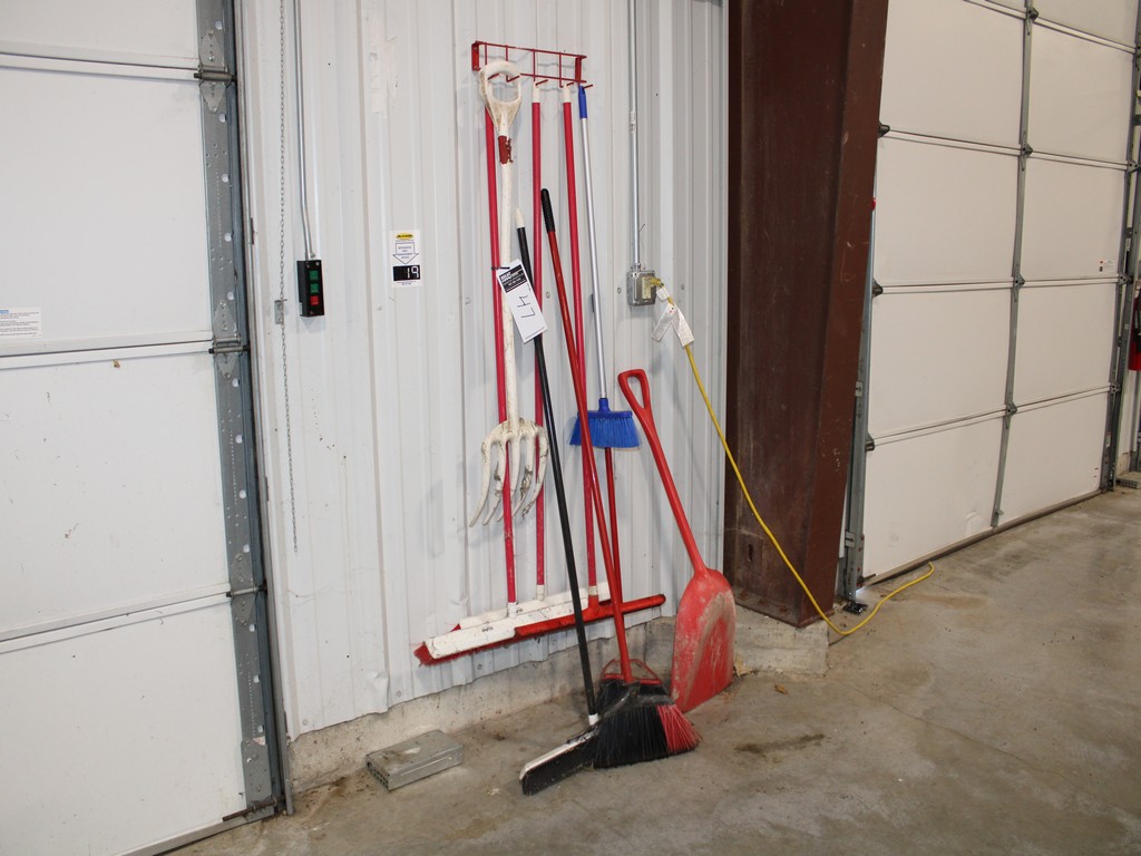 Consisting of but not limited to: Approximately (40) 5-Gallon Plastic Buckets; Pitchfork, Shovel, Broom, (3) 2'W Push Brooms, 2'W Squeegee.