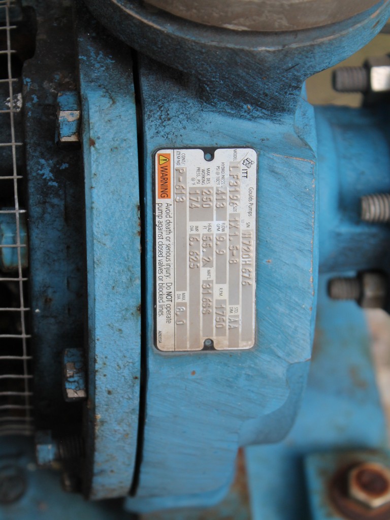 Consisting of but not limited to: 1.5", Size 1X1.5-8, 9.9-GPM, Siemens 1.5-HP Electric Motor; (2) Ashcroft Gauges, Fisher LV-612 Actuator, SN F000753879 (Remove at First Mechanical Break at Pump and at Actuator).