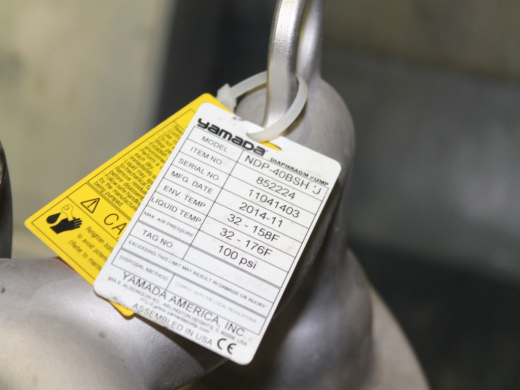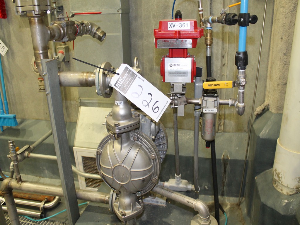 Consisting of but not limited to: Pump Assembly - Yamada NDP-40BSH J Pneumatic Pump, Stainless, 2"Filter; FlowTek 930633-113A0532 Automator with Bray Controller; Stainless Pipe Assemblies (2) 2" Ball Valves, 1-3/4" Ball Valve, (2) 1" Ball Valves; Neway CF8M 2" Connector.