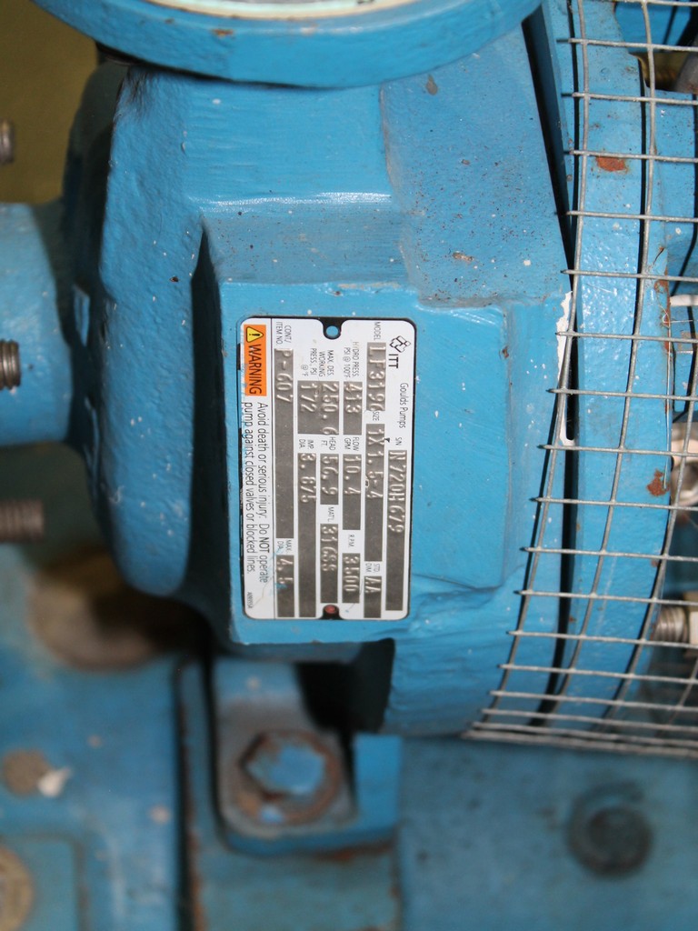 Consisting of but not limited to: Pump P-607,1.5", Size 1X1.5-4, Shaft Guard, Weg 00156XT3E143T Pump, Frame 143T, 1.5-HP, Loose Shaft Guard; Various Couplings and Gauges.