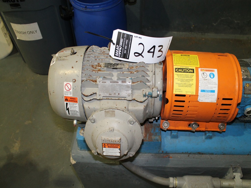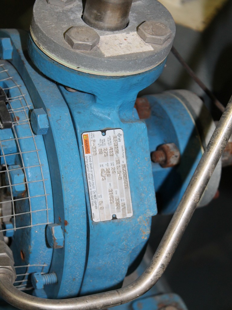 Consisting of but not limited to: Pump P-338, 1.5", Size 1X1.5-8, Shaft Guard, Siemens 1MB21212AA214 10-HP Electric Motor, 215T Frame; John Crane GR1/AXCNU/4096 Pressure Reservoir, 316L Stainless, Pressure Gauge; Various Couplings and Gauges.