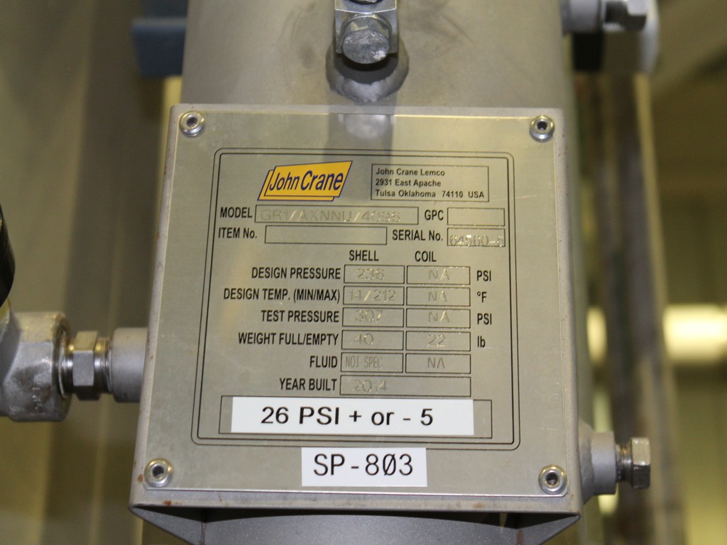 Consisting of but not limited to: Pump No. P-803, 1.5", Weg 5-HP Electric Motor, 184T Frame; John Crane GR1/AXCNU/4096 Pressure Reservoir, 316L Stainless, Pressure Gauge; Various Piping, Valves, Instruments, etc.