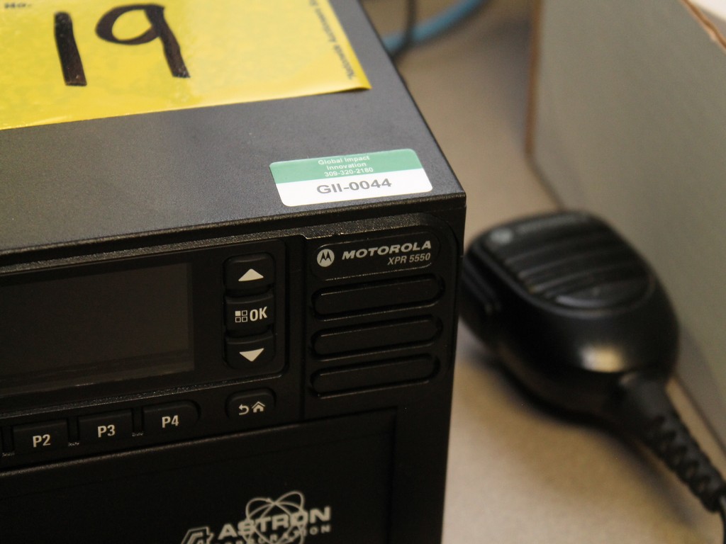 Consisting of but not limited to: Motorola XPR-5550, SN: 2015030001, Includes Compact Microphone, Low Profile Bracket, 10 ft. Power Cable, Astron Power Supply and Magnetic Mount Antenna; (6) XPR-7550 Portable, UHF, Display, Includes IMPRES Li-ion Battery, IMPRES Single Unit Charger, Whip Antenna, Accessory Dust Cover, 2.5" Belt Clip; (Some are Located in Other Offices).