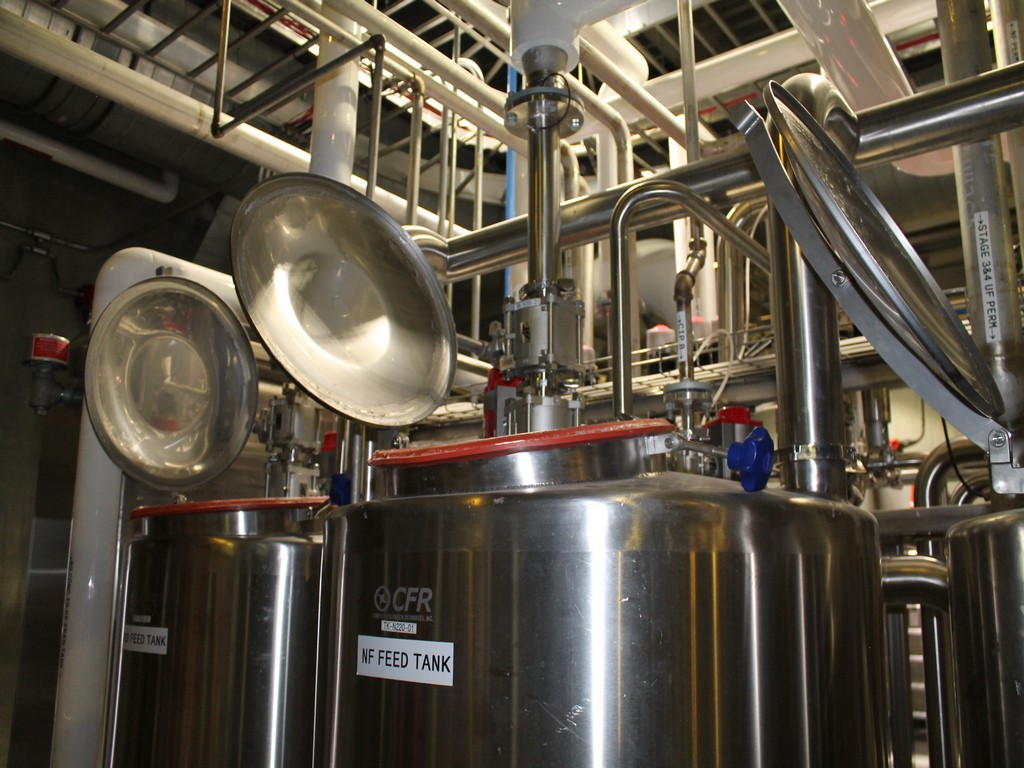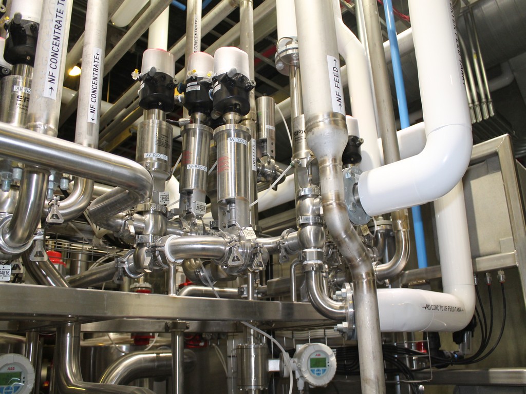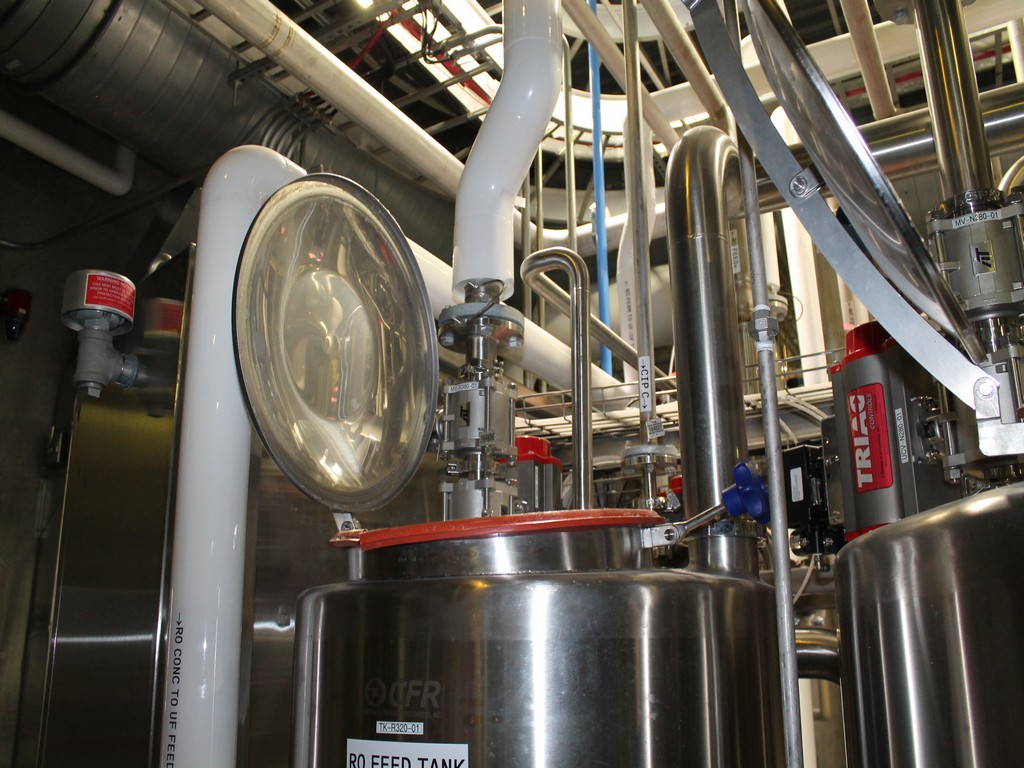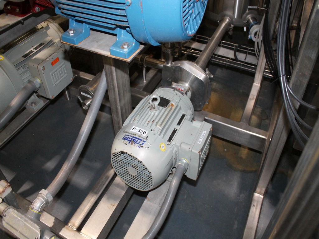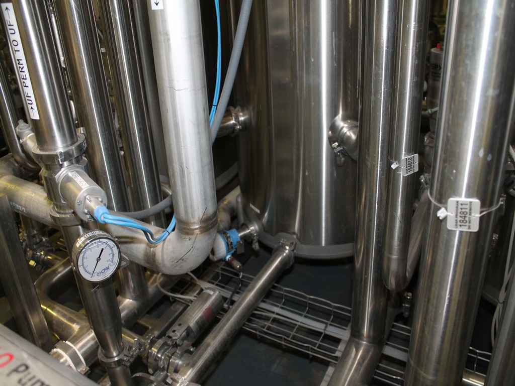 Consisting of but not limited to: Approximately 18'L x 13'W Skid Size; Stainless Control Panel with Allen-Bradley PanelView Plus 1500 Controller; TK-R320-01 RO Feed Tank, Estimated 150 Gallons; TK-U140-01 UF Permeate Tank, Estimated 150 Gallons; TK-U120-01 UF Feed Tank, Estimated 350 Gallons; Fristam FPX Stainless Pump, Weg 7.5-HP Electric Motor; Temperature Transmitters; (2) TonkaFlo AS4042D 15HP TEFC C Pumps, 9 GPM, Weg 15-HP Electric Motor; (2) Fristam FPX3542-205 Stainless Pump, Weg 25-HP Electric Motor; Fristam FPX Pump, Weg 20-HP Electric Motor; Various FlowTek Automators with Triac PPR-1200 Pneumatic Positioners; Numerous SPX K-080-00-14-06 Pneumatic Actuators with Burkert 8681 Process Valve Automators; Adalet XJW12GCH Explosionproof Meter Housings and Optek Control 4000 Photometric Sensors; Various Triac Valve Controllers; etc.