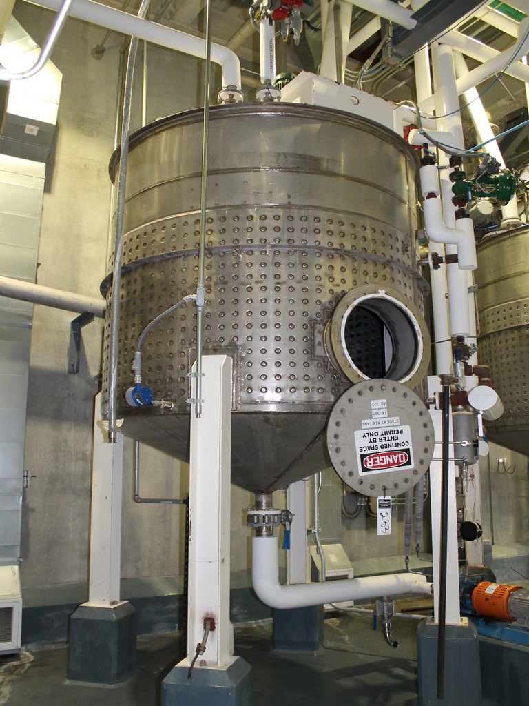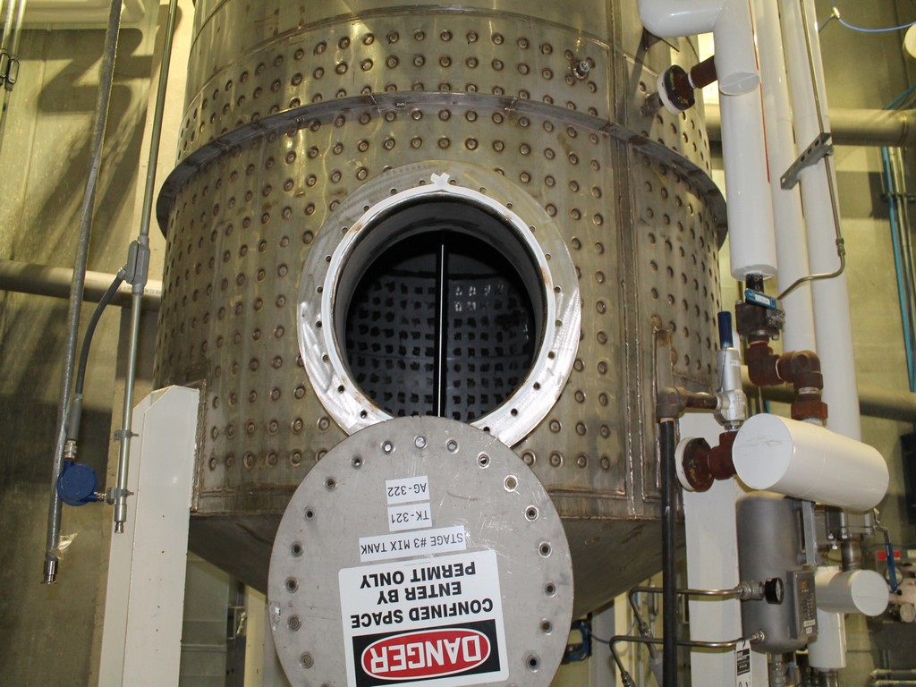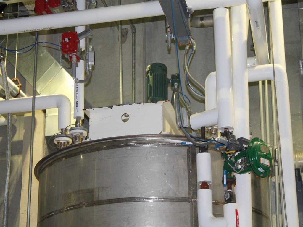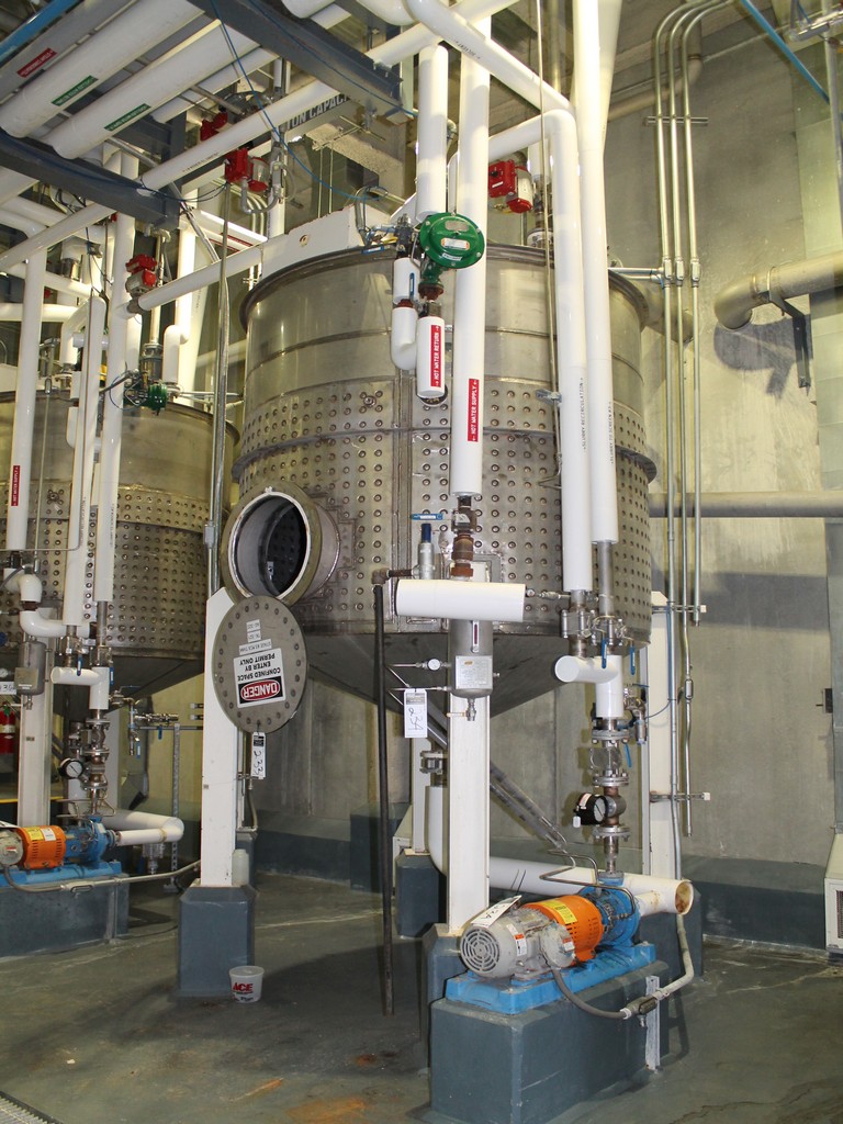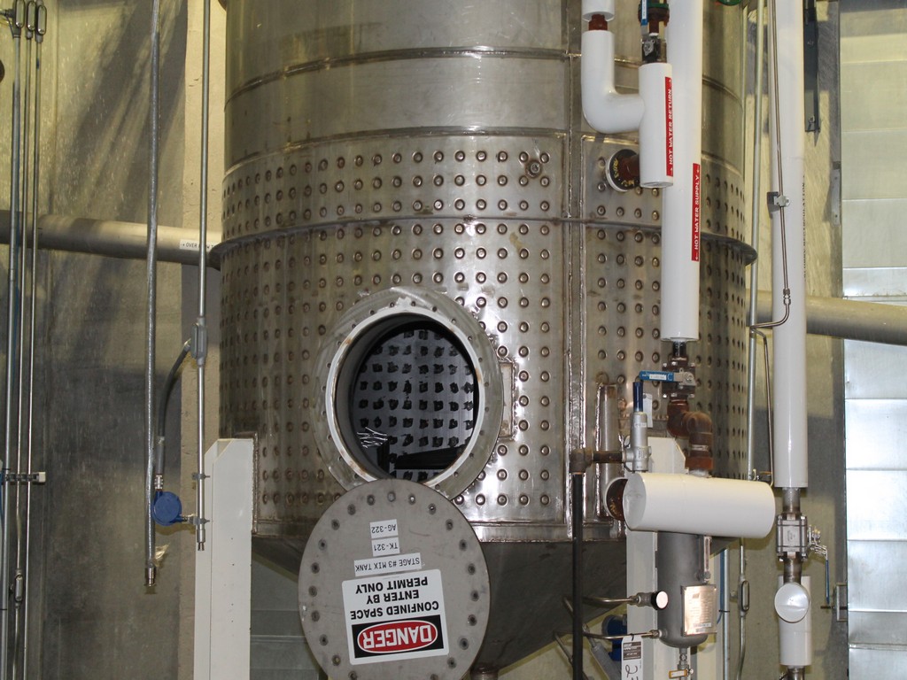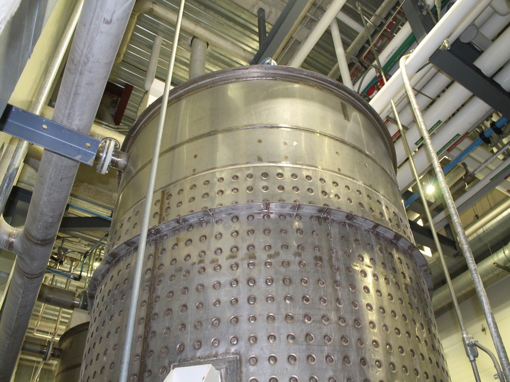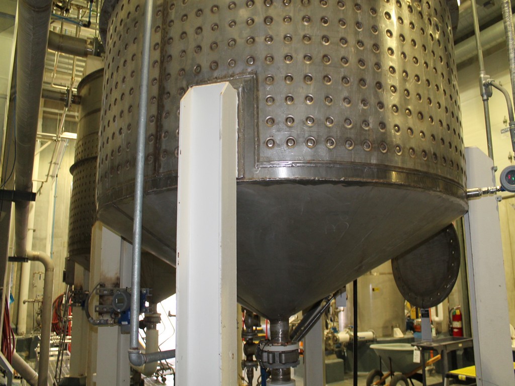 Consisting of but not limited to: 2040 gallons, T-304L Stainless, Vertical, 66" Diameter x 84" Shell, 21" Deep Cone, Vertical, Mounted on Painted Steel Legs, Jacketed, Manway, 12" Dia. Flange, 8" Gusseted Flange for Agitator, 1" Outlet with Coupling and Temperature Transmitter, Bottom Valve, (3) 7"W x 72"L Anti-Swirl Baffles, Top Mounted Mixer/Agitator; Foxboro LR01 Free Space Radar Level Meter; Fisher Actuator; etc.