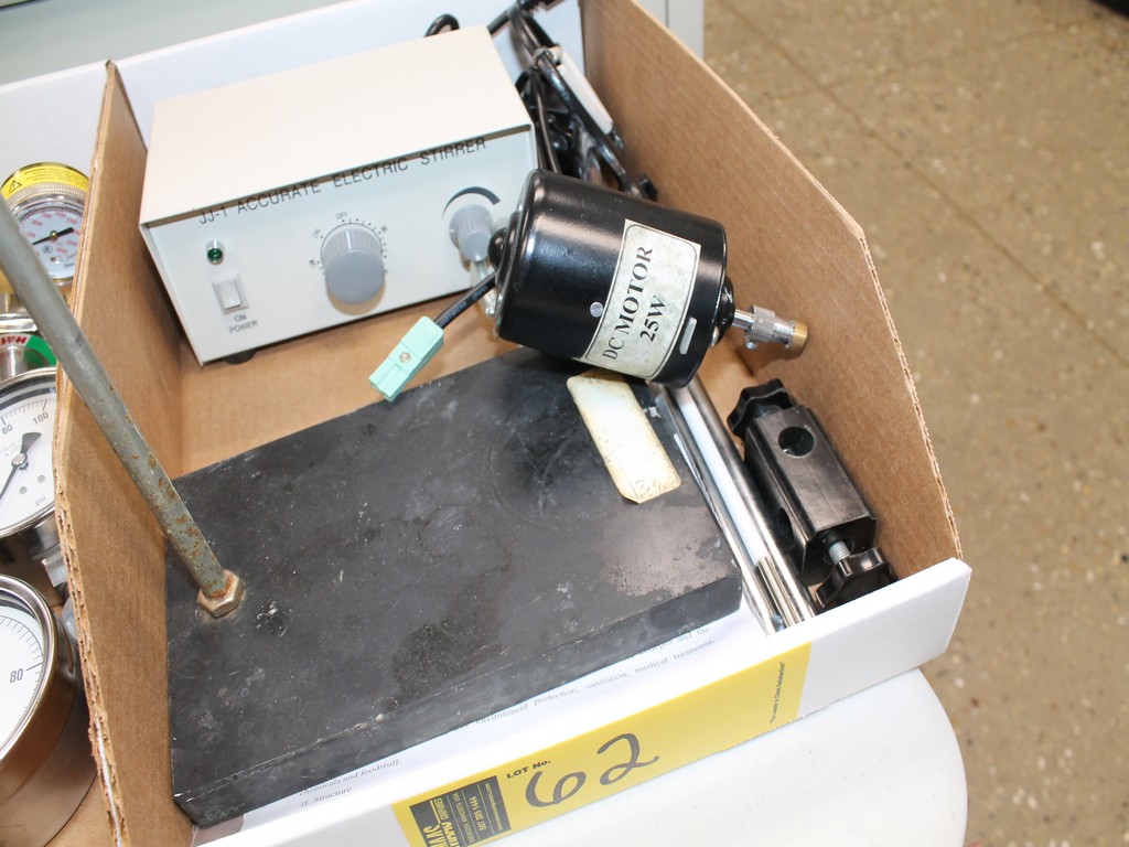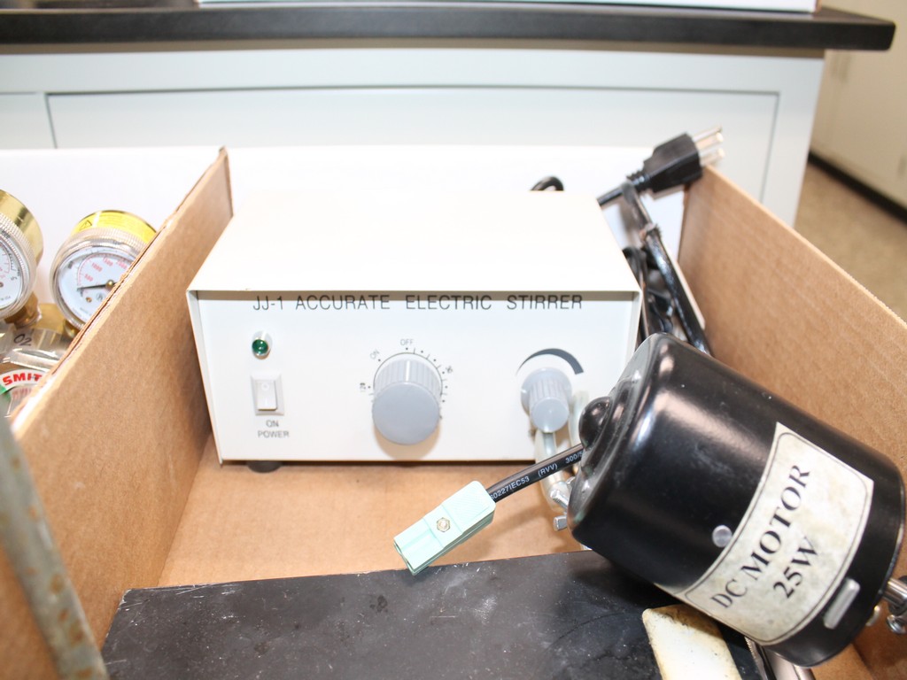 Consisting of but not including: Accurate JJ-1 Electric Stirrer; 25 Watt DC Motor; Steel Base with Post, 6"W x 9"W x 23"T.