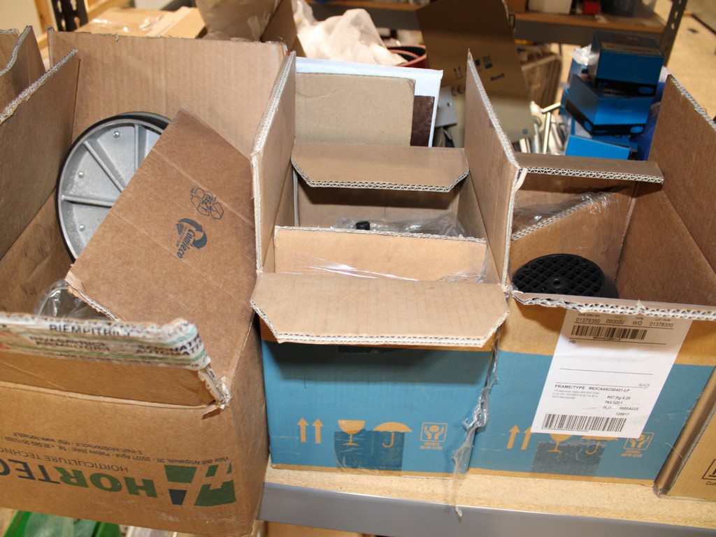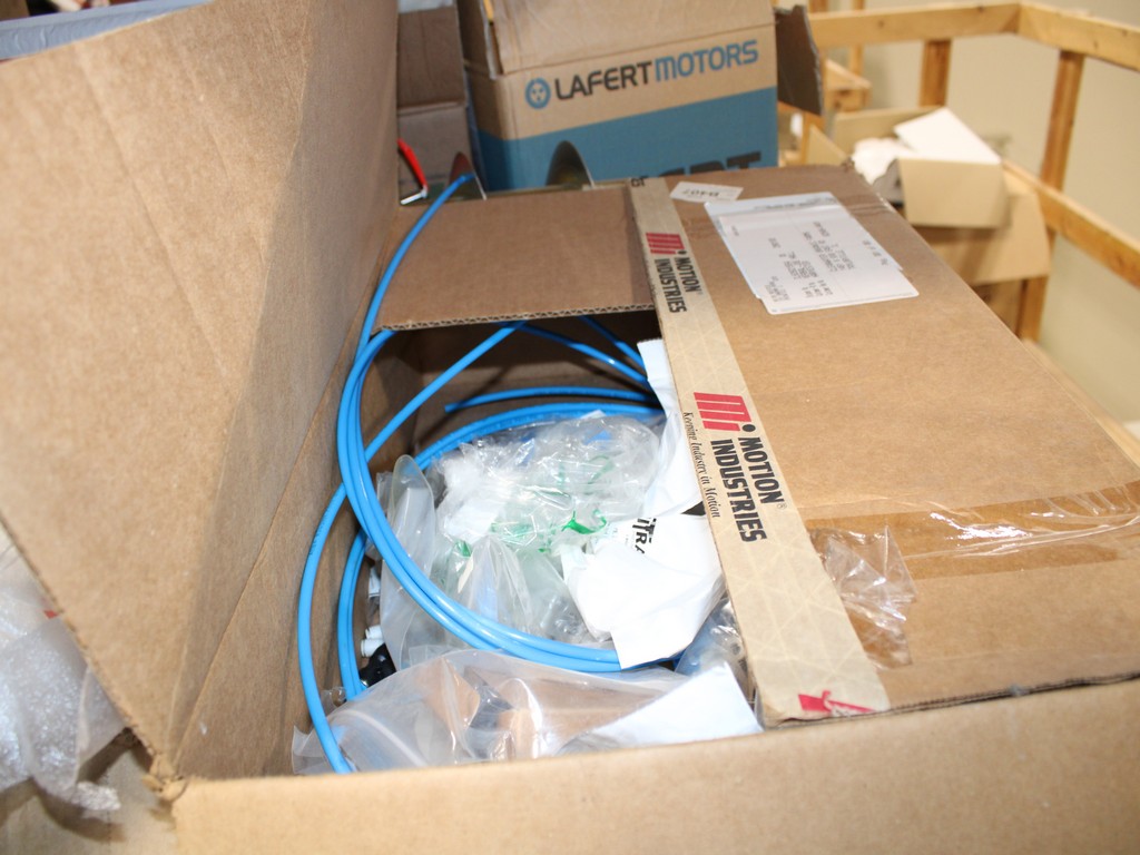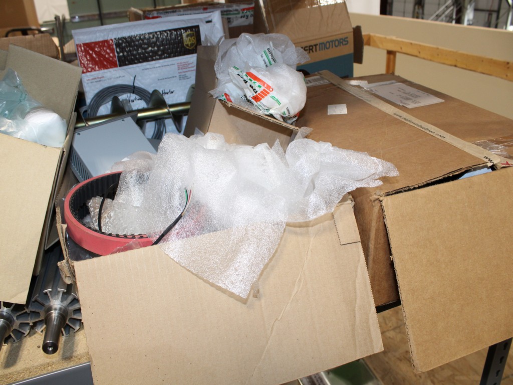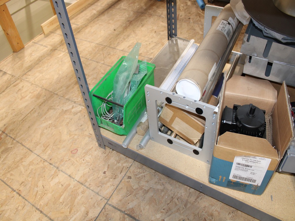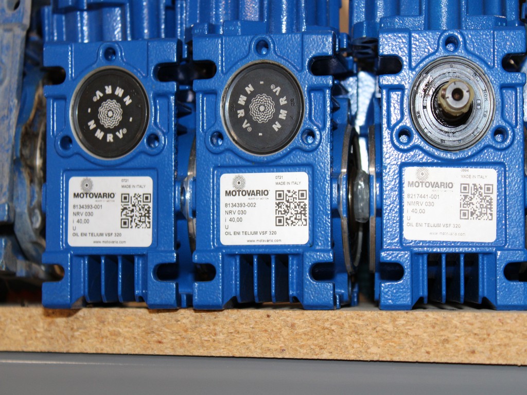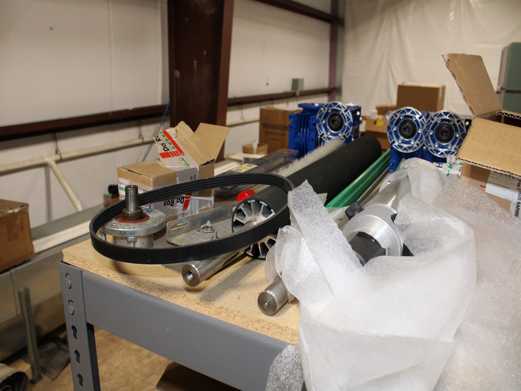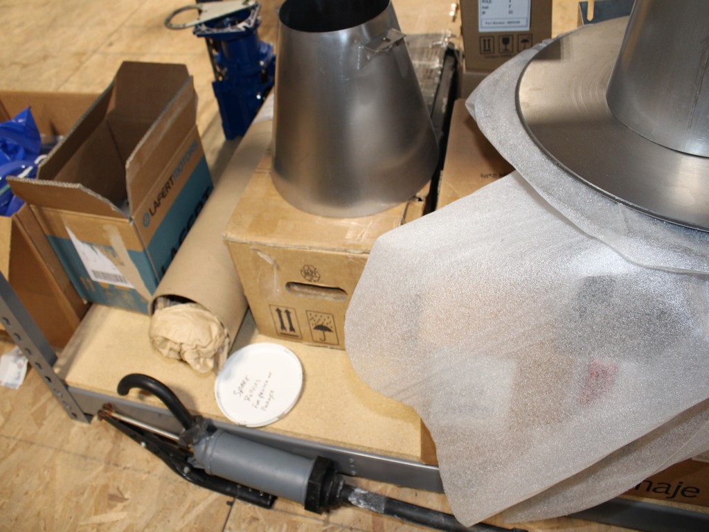 Consisting of but not limited to: 3'W x 6'L x 5'T Wide Span Storage Rack, (3) Particle Board Shelves; (2) AEG .55-KW Motor; AEG .25-KW Motor; AEG .18-KW Motor; AEG .75-KW Motor; (3) MOTOVARIO T71-B4 .37-KW Motor; MOTOVARIO T80-B4 1-HP Motor; (15) MOTOVARIO Gear Boxes; Lafert .55-KW Motor; Lafert 1.1-KW Motor; Spare Water Line Tubing; Smart Date Fault Beacon Assembly; Spare Belts, Actuators, Nuts, Bolts, Etc.; OHLSON 12" x 12?" Aluminum Box with 5-Roller Poles for Plastic Wrap; MARKEM-IMAJE box of (4) SKMI 4RL XPERT 3910 BK 55 MMX Toner, (4) SKMI 4RL XTRA 3520BK 55MMX1 Toner; (2) 10" Diameter -10"T Growlight Cam; (2) DA ROS Harvesting Blades; (8) Aluminum 12-Slotted Shaft, 1"W with Various Length Poles; 20" Spiral Brush.