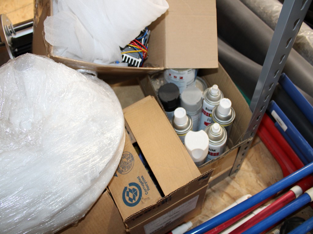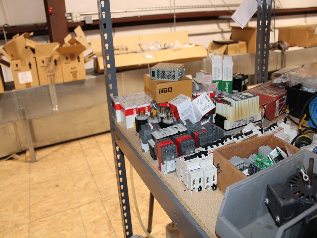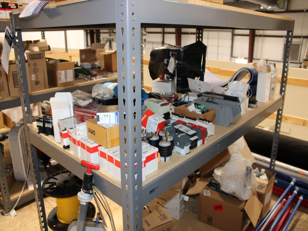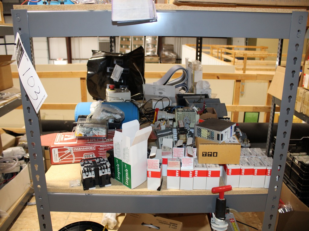 Consisting of but not limited to: 3'W x 6'L x 5'T Wide Span Storage Rack, (3) Particle Board Shelves; (3) Conveyor Belts; (4) KEYENCE GS-11P5 Safety Interlock Switches; (4) KEYEKNCE GSB11 Mounting Brackets; SOJET Elfin II High Resolution InkJet Printer; SIEMENS Dynamics V20 Controller; (2) Rolls of Braided Rope; SMALL KITCHEN TREASURE 660400 Hot Water Heater, Electric; Approximately (60) ABB Circuit Breakers, Single, Double, Quad; Assortment of Paint; Approximately (10) Broom Handles with Assortment of Squeegee, Mop, Broom Heads.