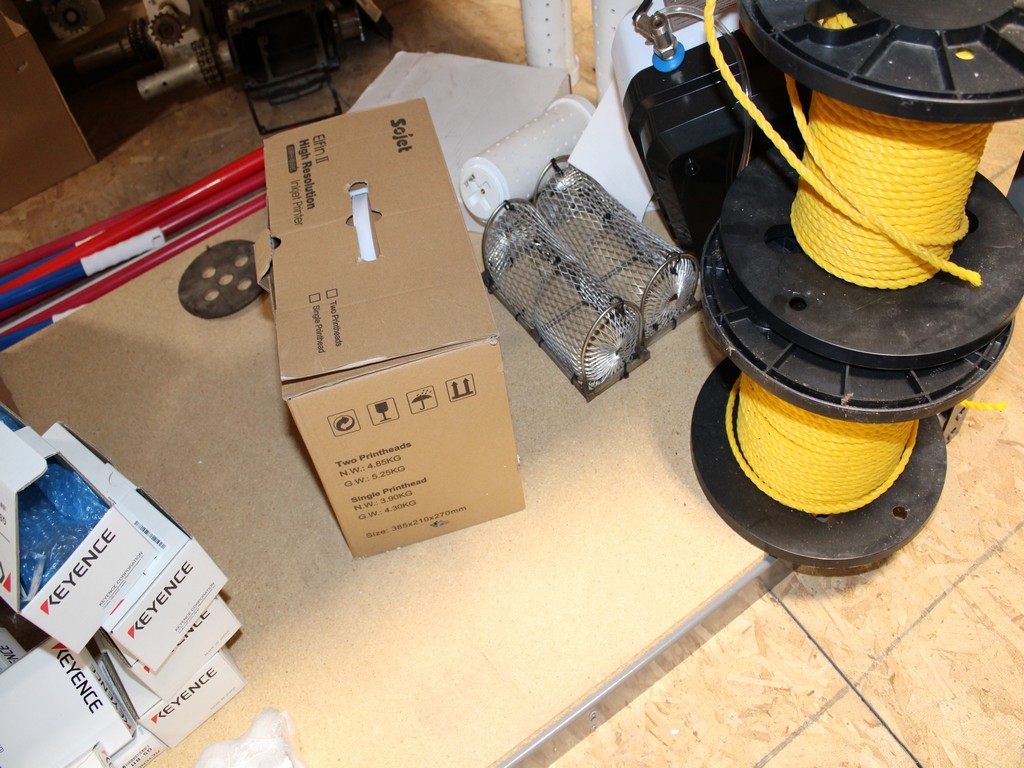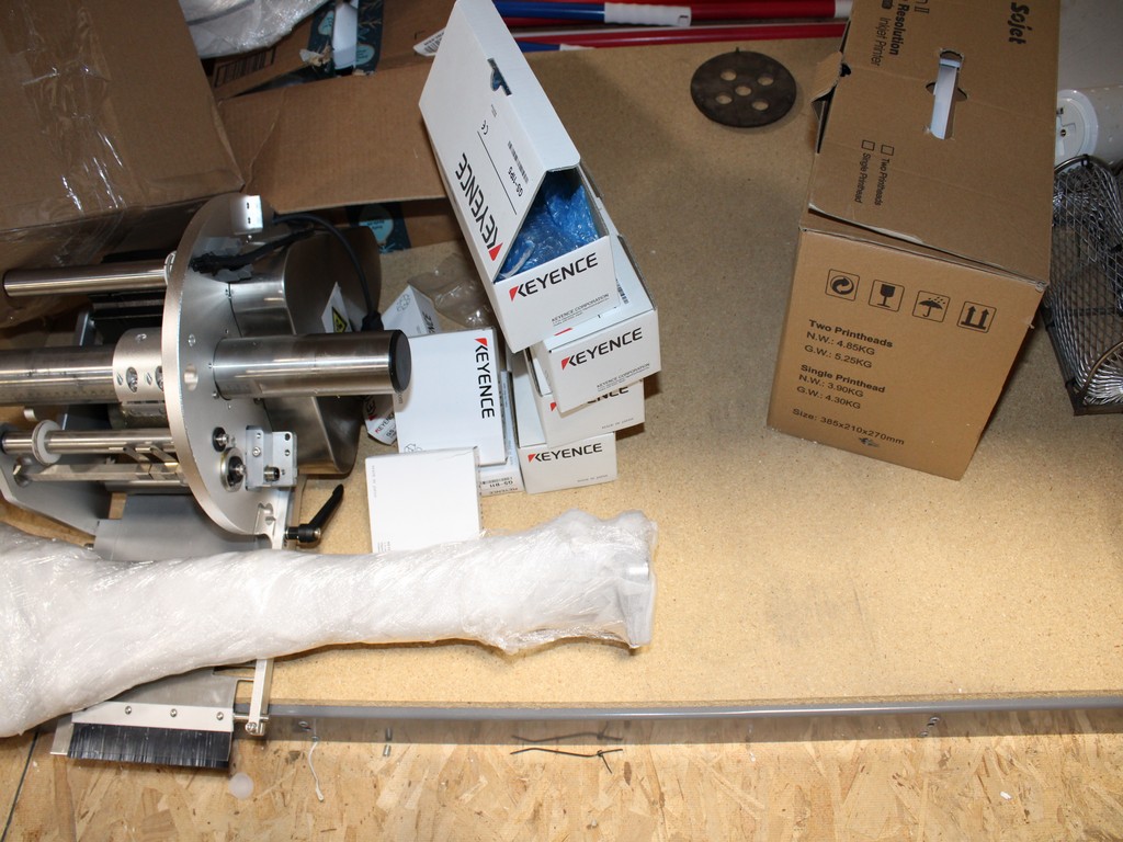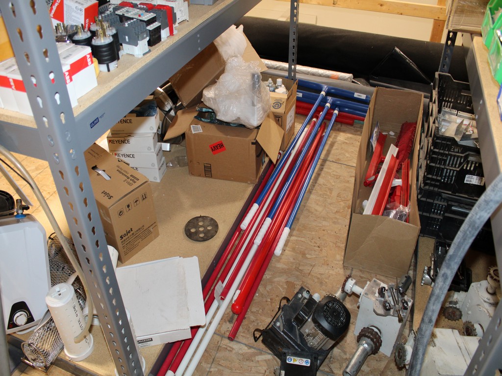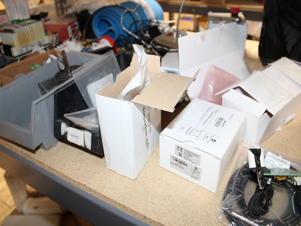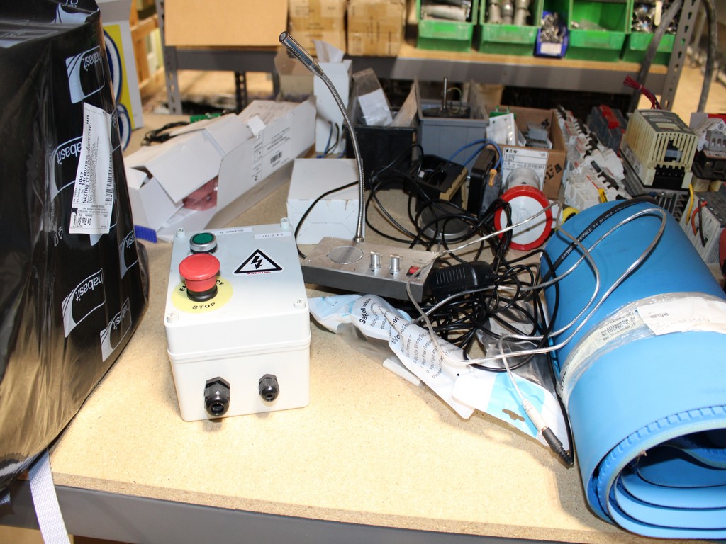 Consisting of but not limited to: 3'W x 6'L x 5'T Wide Span Storage Rack, (3) Particle Board Shelves; (3) Conveyor Belts; (4) KEYENCE GS-11P5 Safety Interlock Switches; (4) KEYEKNCE GSB11 Mounting Brackets; SOJET Elfin II High Resolution InkJet Printer; SIEMENS Dynamics V20 Controller; (2) Rolls of Braided Rope; SMALL KITCHEN TREASURE 660400 Hot Water Heater, Electric; Approximately (60) ABB Circuit Breakers, Single, Double, Quad; Assortment of Paint; Approximately (10) Broom Handles with Assortment of Squeegee, Mop, Broom Heads.