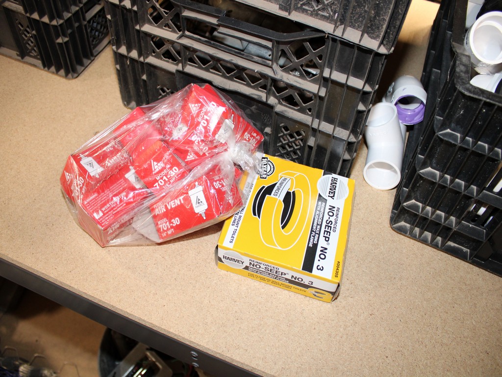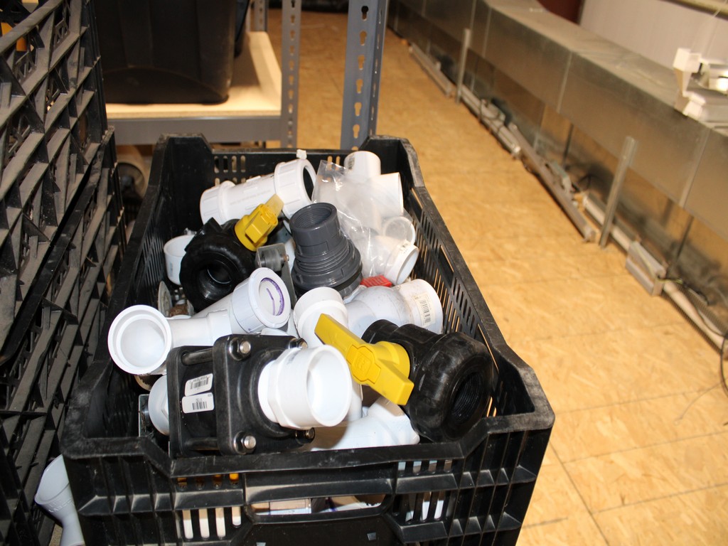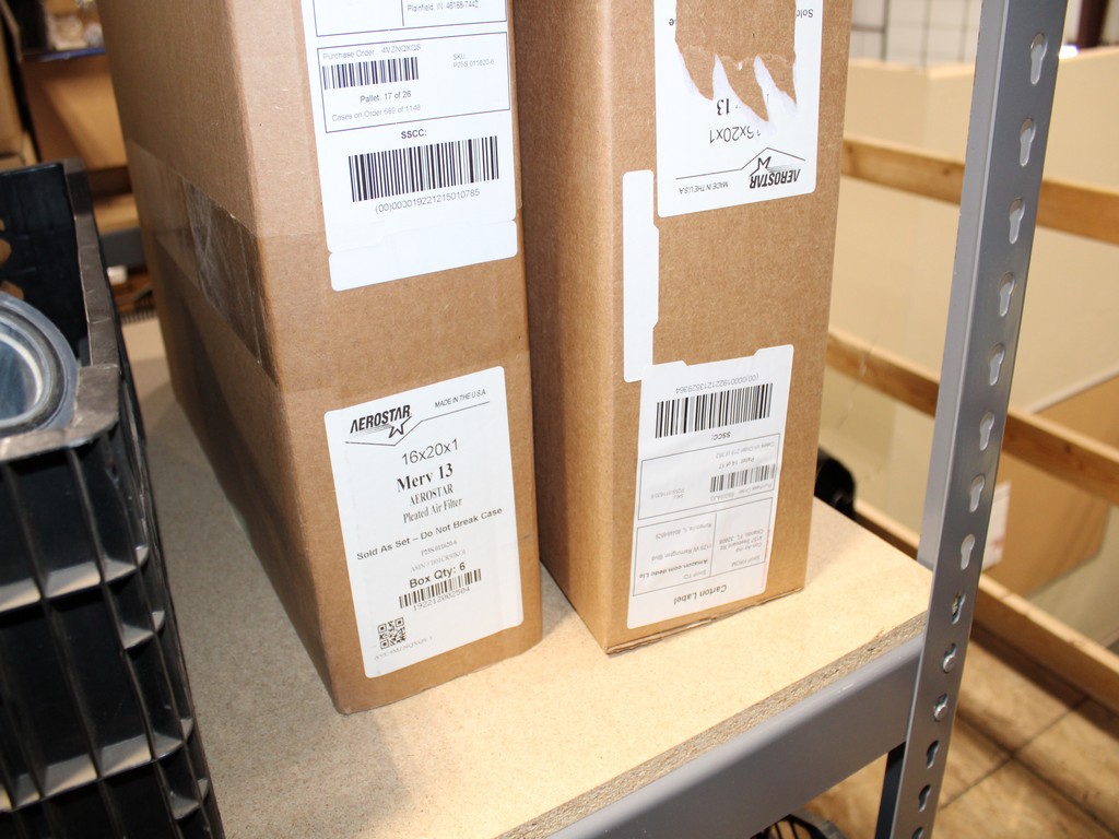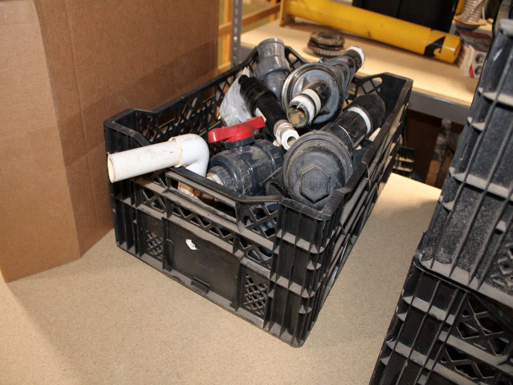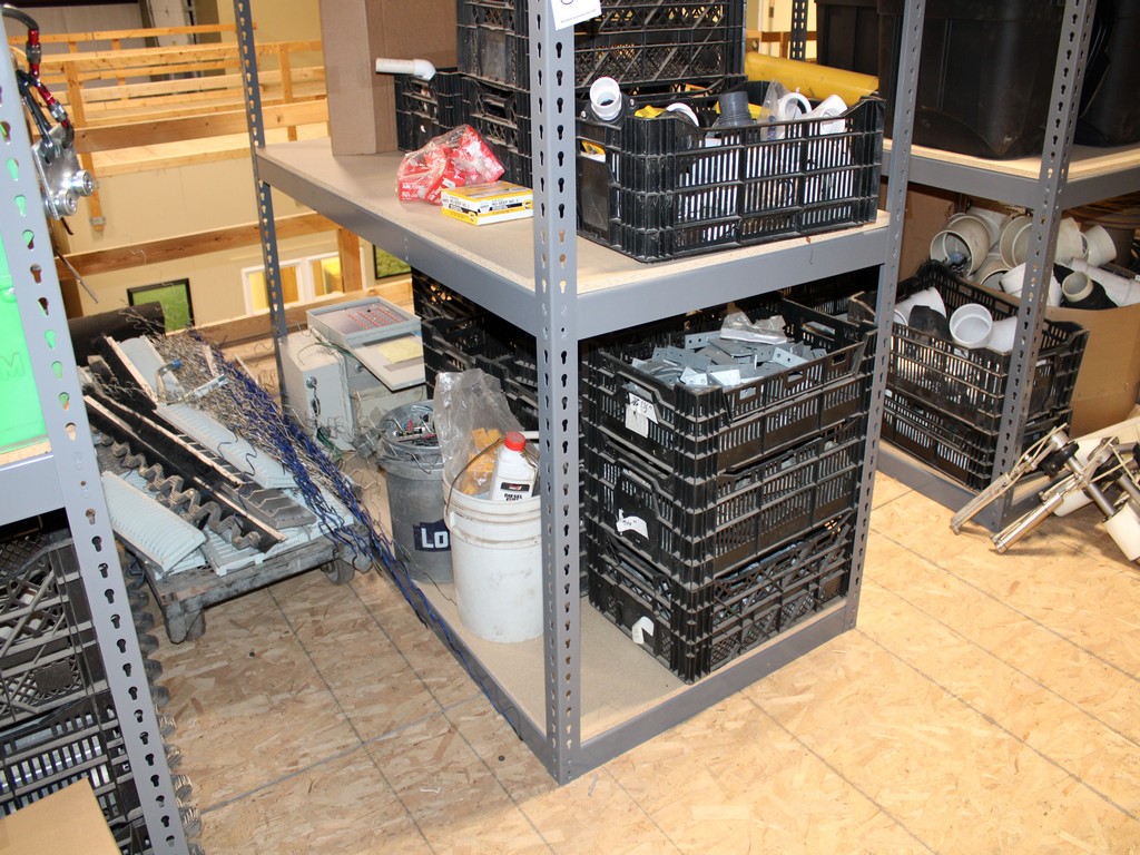 Consisting of but not limited to: 3'W x 6'L x 6'T Wide Span Storage Rack, (3) Particle Board Shelves; (15) 23" x 16" Plastic Containers with Various PVC Pipe Angle, T's, Tube Connectors, Valves, Metal Joints; (3) Solar 12C Metal Control Boxes, 12" x 14", (2) AEROSTAR Merv 13 Pleated Air Filters, 16 x 20 x 1; (3) Boxes of MERV 13 Pleated Air Filters, 20 x 25 x 2.