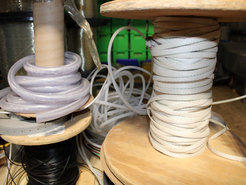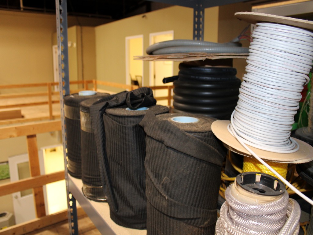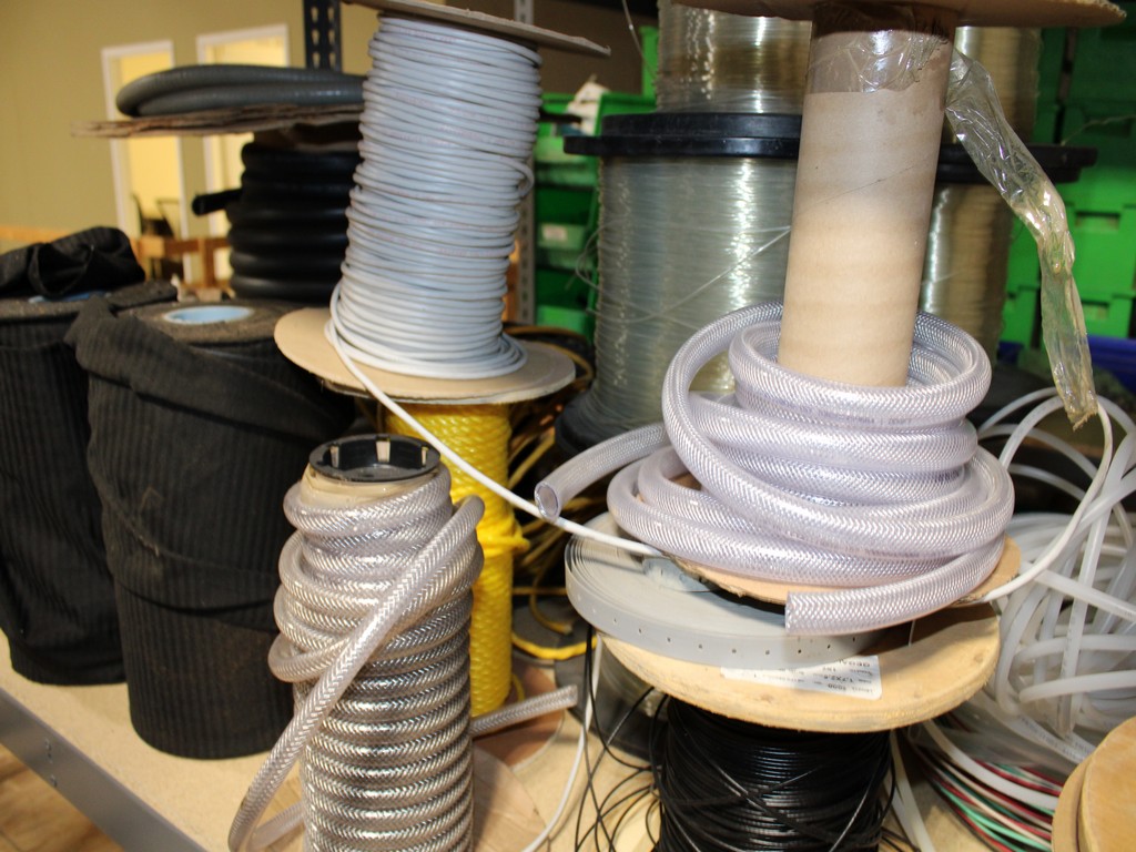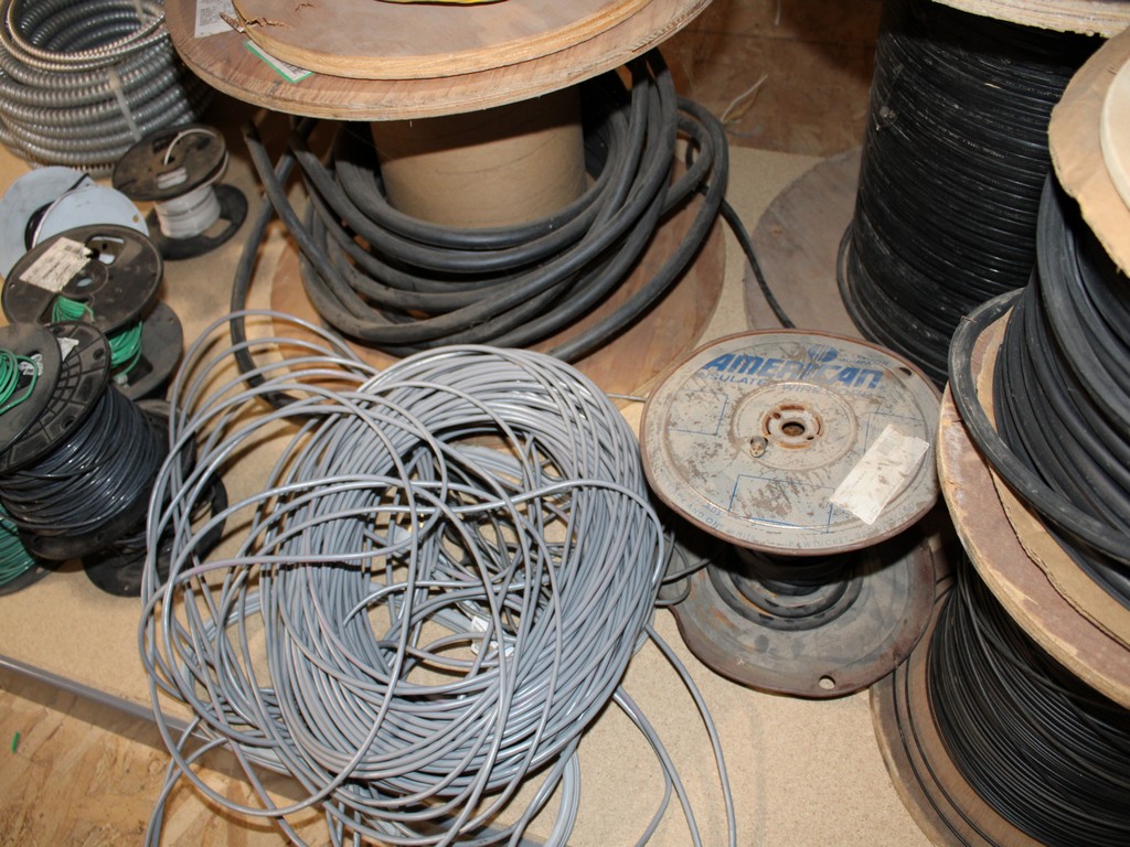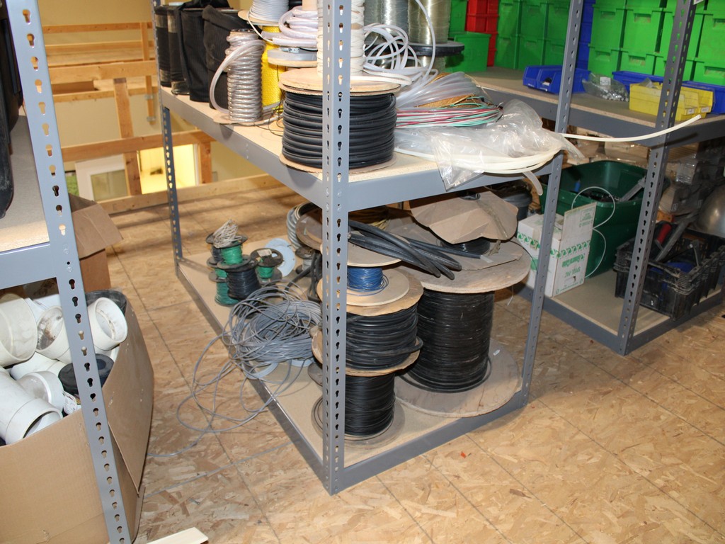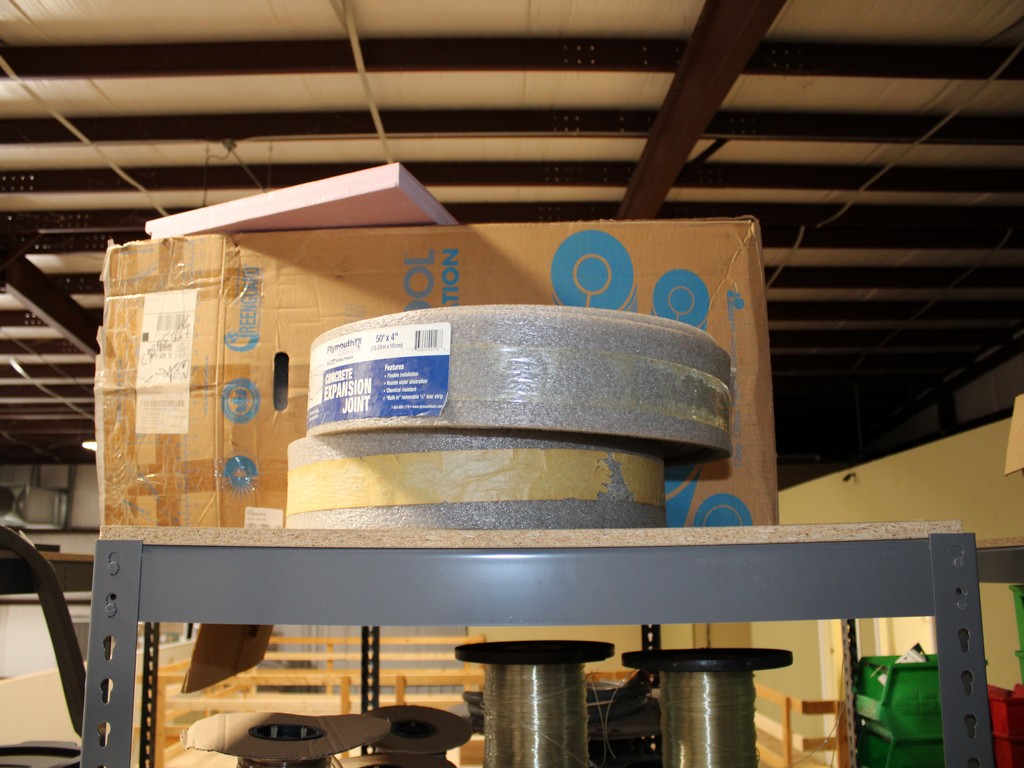 Consisting of but not limited to: 3'W x 6'L x 6'T Wide Span Storage Rack, (3) Particle Board Shelves; (8) Rolls of Clear Plastic Filament; 1/4" Diameter Clear Tube; 1/2" Black Tube; (2) Rolls of 1/2" Flex Tube; (2) Black Plastic Filament; Blue Plastic Filament; (10) Rolls of Various Gauges of Wire; 3/4" Black Tube; (4) Rolls of Black Fabric, 13?"W; (2) Rolls of Wire.