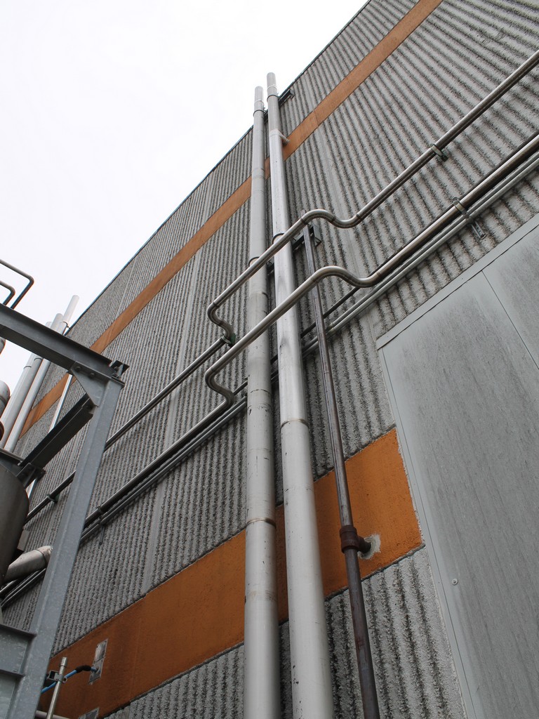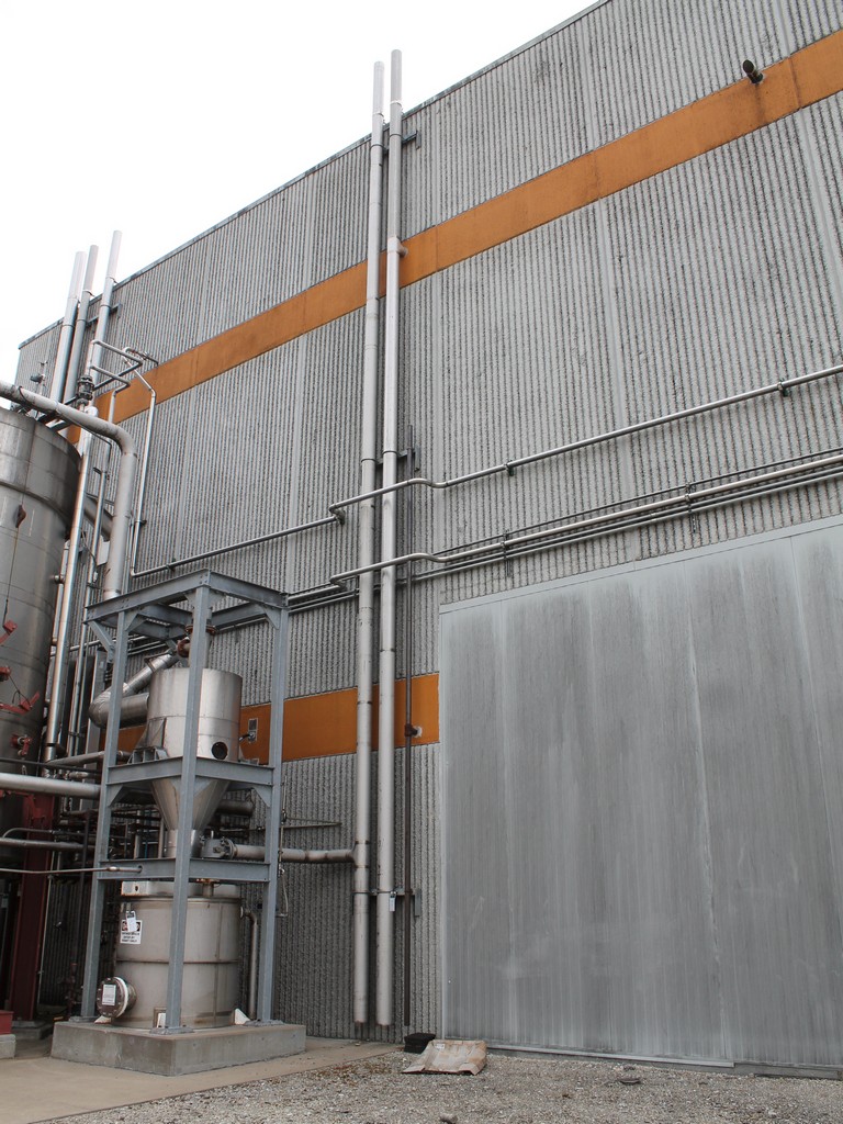 Consisting of but not limited to: Tank Vents on Outside of Building - Stainless Steel Tubing Vents, (1) 4", (4) 8", and (1) 10" on East Side of Building; (4) 8" and (1) 10" on West Side of Building; Estimated 45'L, Includes Lengths of Tubing in the Plant to the Tanks. NOTE: Holes in Building Must be Patched.